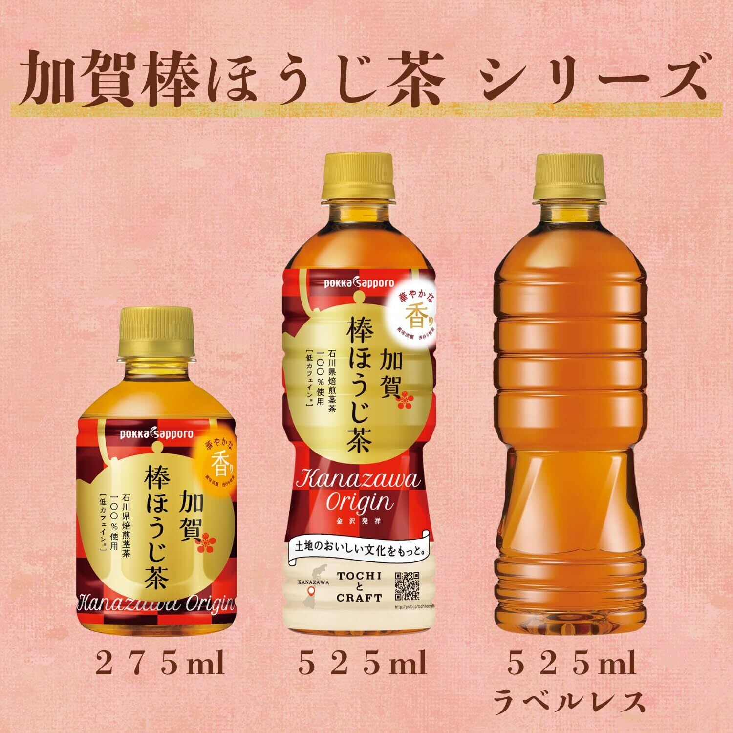 ポッカサッポロ 加賀棒ほうじ茶 525ml PET ラベルレス ×24本