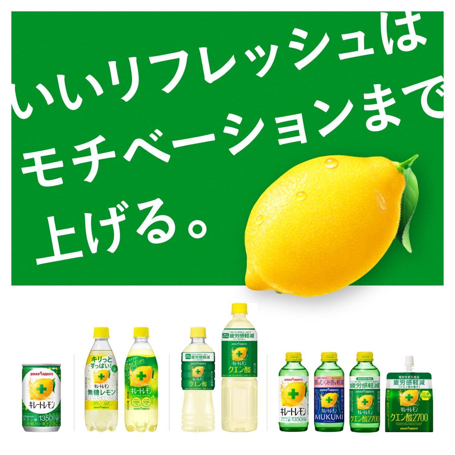 レモン1個分の果汁*、クエン酸が3000mg入った、クエン酸の働きで日常生活や運動後の一時的な疲労感を軽減できる、機能性表示食品のレモン飲料です。 *レモン1個分=レモン果汁約30ml