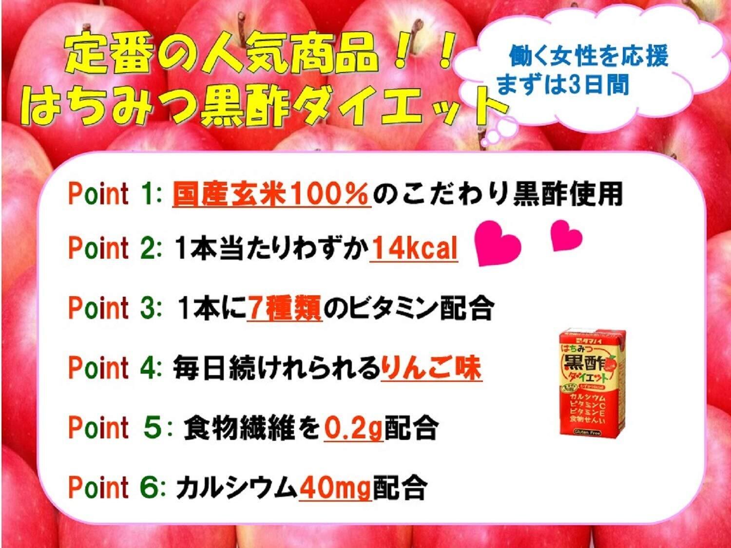 国産玄米のみを原料とした上質の黒酢と、りんご果汁を合わせました。黒酢5ml、カルシウム、ビタミンC、D、E 配合。スポーツ選手も愛飲しています。美容と健康を応援。