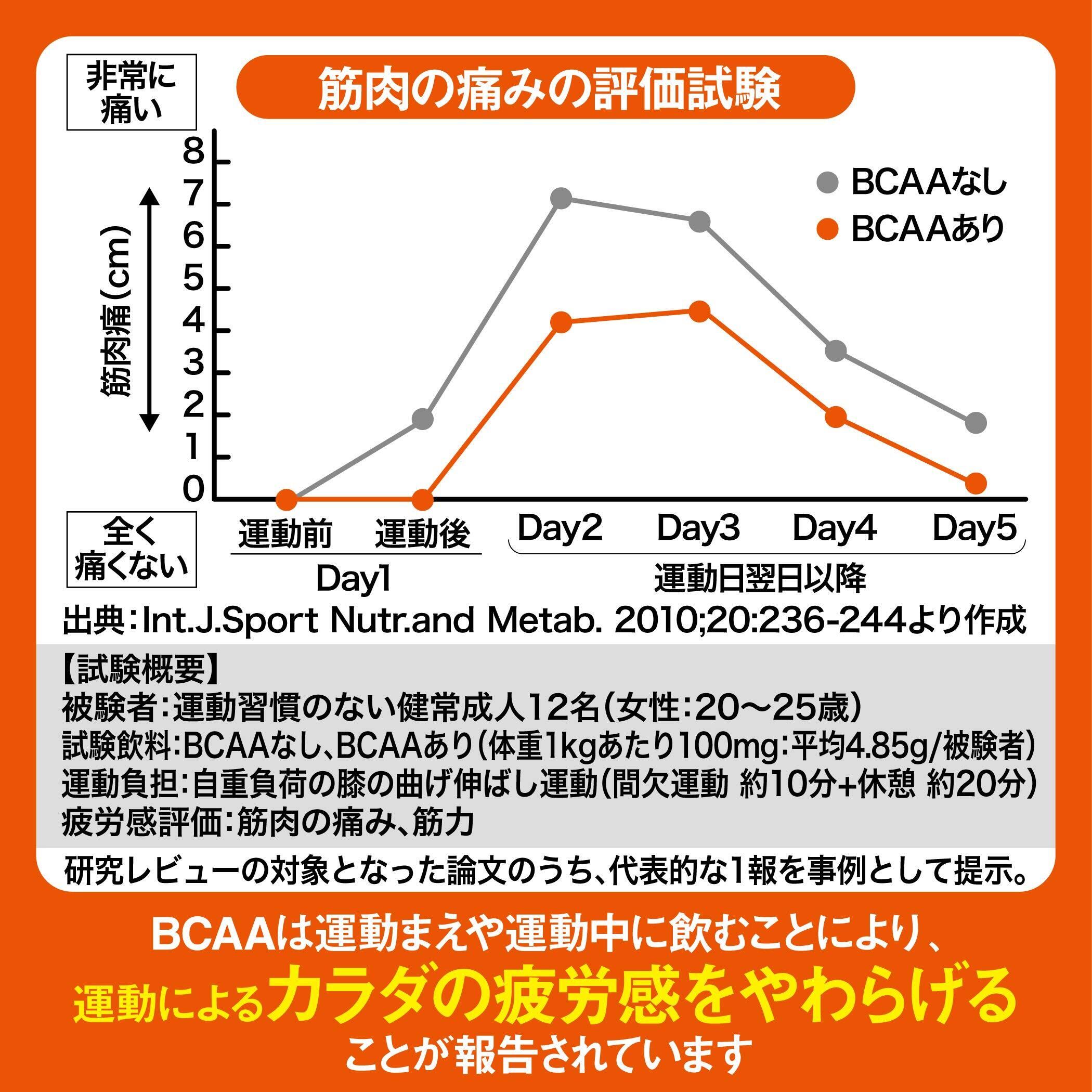 ■届出表示:本品にはBCAA(バリン、ロイシン、イソロイシンの総称)が含まれます。BCAAは運動まえや運動中に飲むことにより、運動によるカラダの疲労感をやわらげることが報告されています。