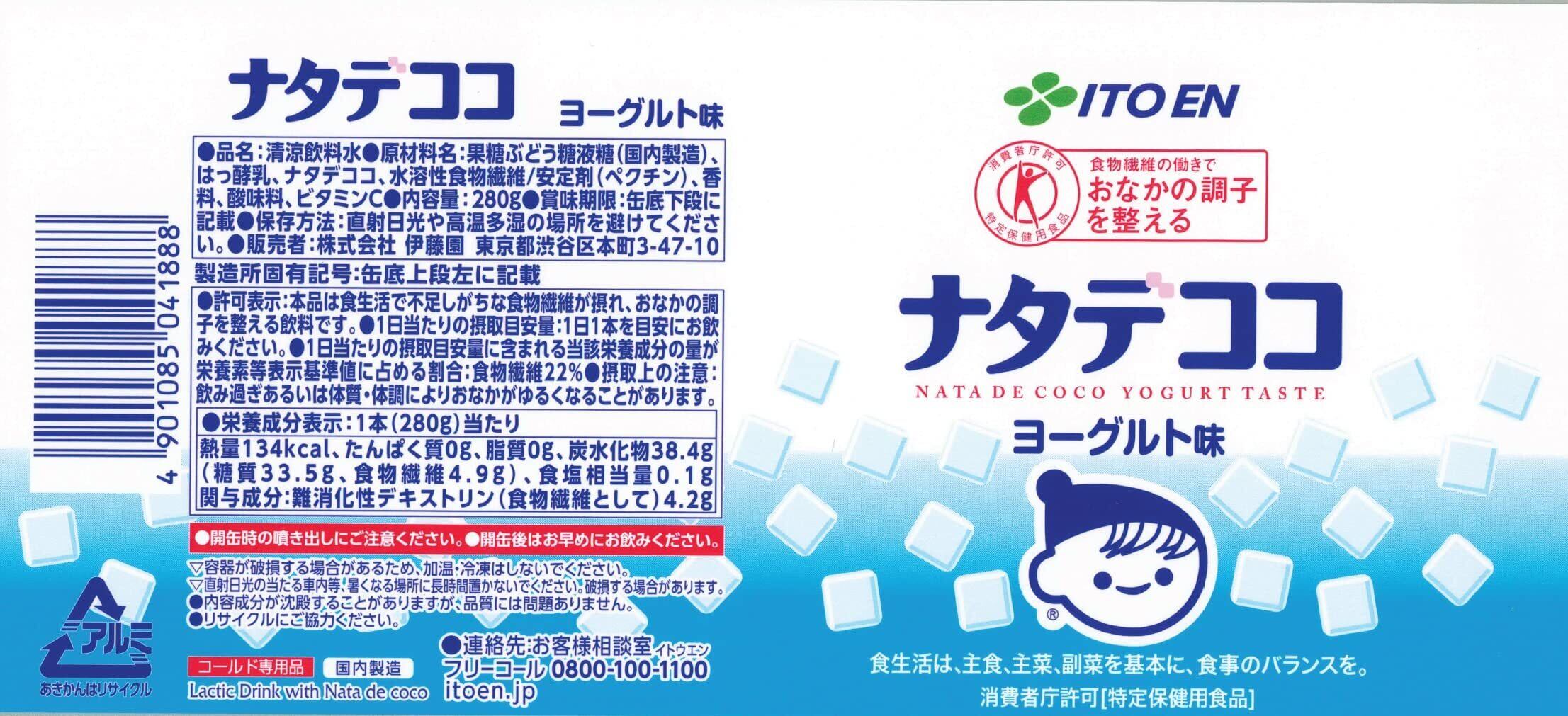原材料:果糖ぶどう糖液糖(国内製造)、はっ酵乳、ナタデココ、水溶性食物繊維/安定剤(ペクチン)、香料、酸味料、ビタミンC