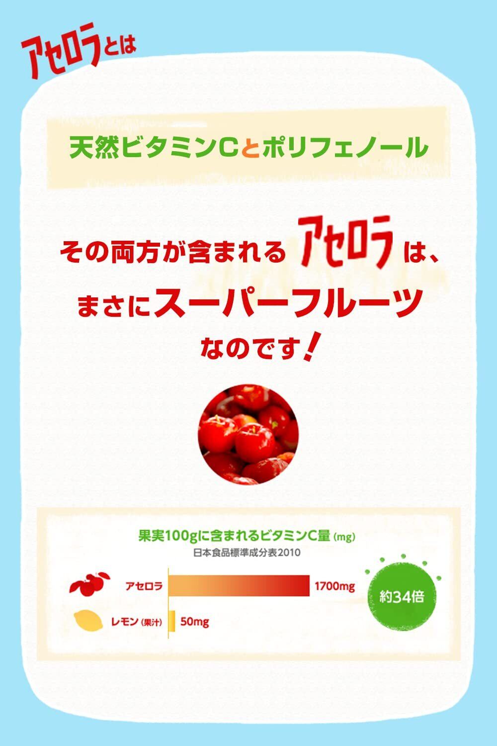 アセロラ、糖類(果糖ぶどう糖液糖、マルトオリゴ糖)、はちみつ、酸味料、香料、アントシアニン色素、甘味料(ステビア)、カロチノイド色素