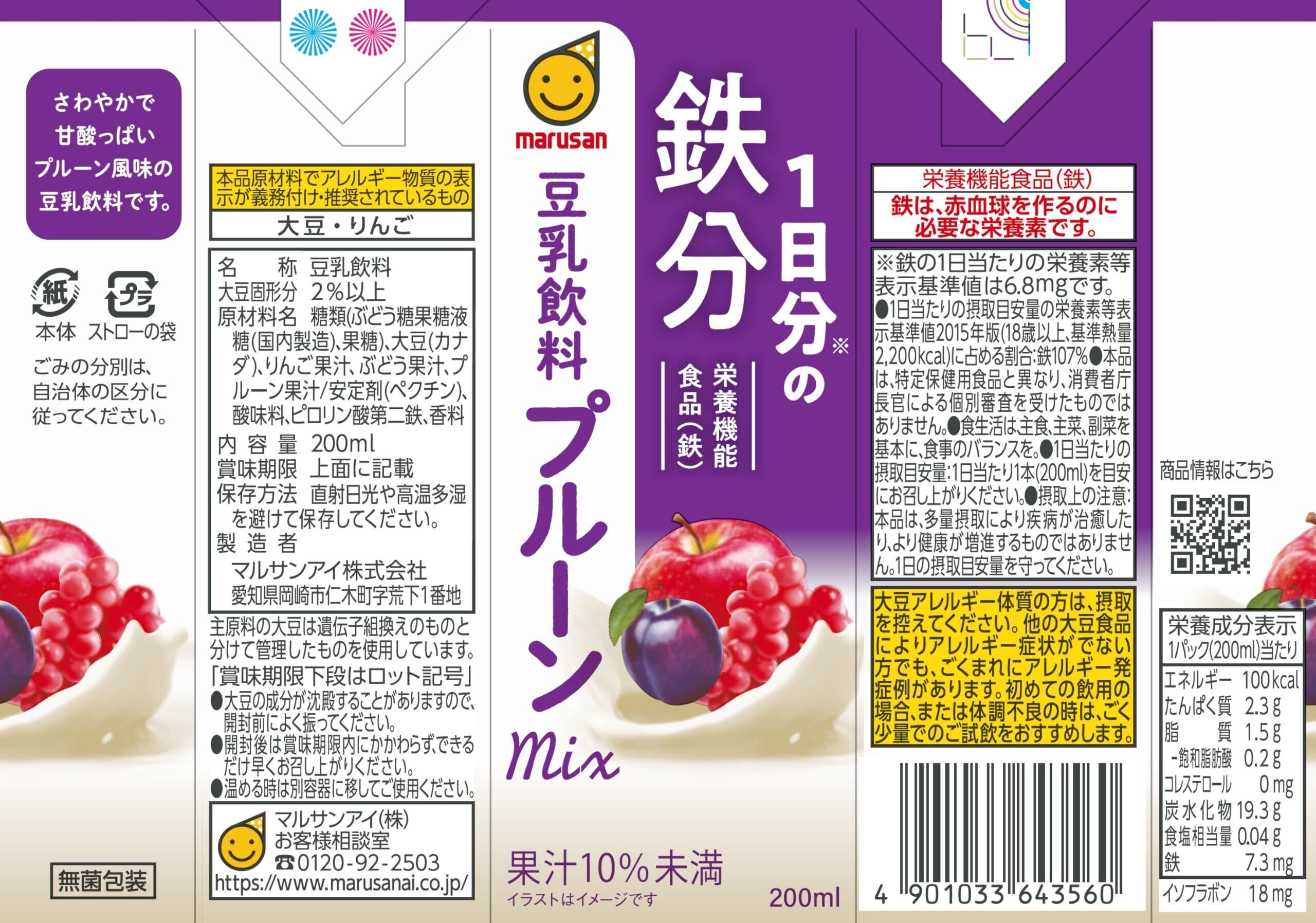 1本(200ml)で1日分(※)の鉄分を手軽に摂取できる栄養機能食品の豆乳飲料です。※1日当たりの摂取目安量栄養素表示基準値2015年版(18歳以上基準熱量2,200kcal)に占める割合:鉄 107%