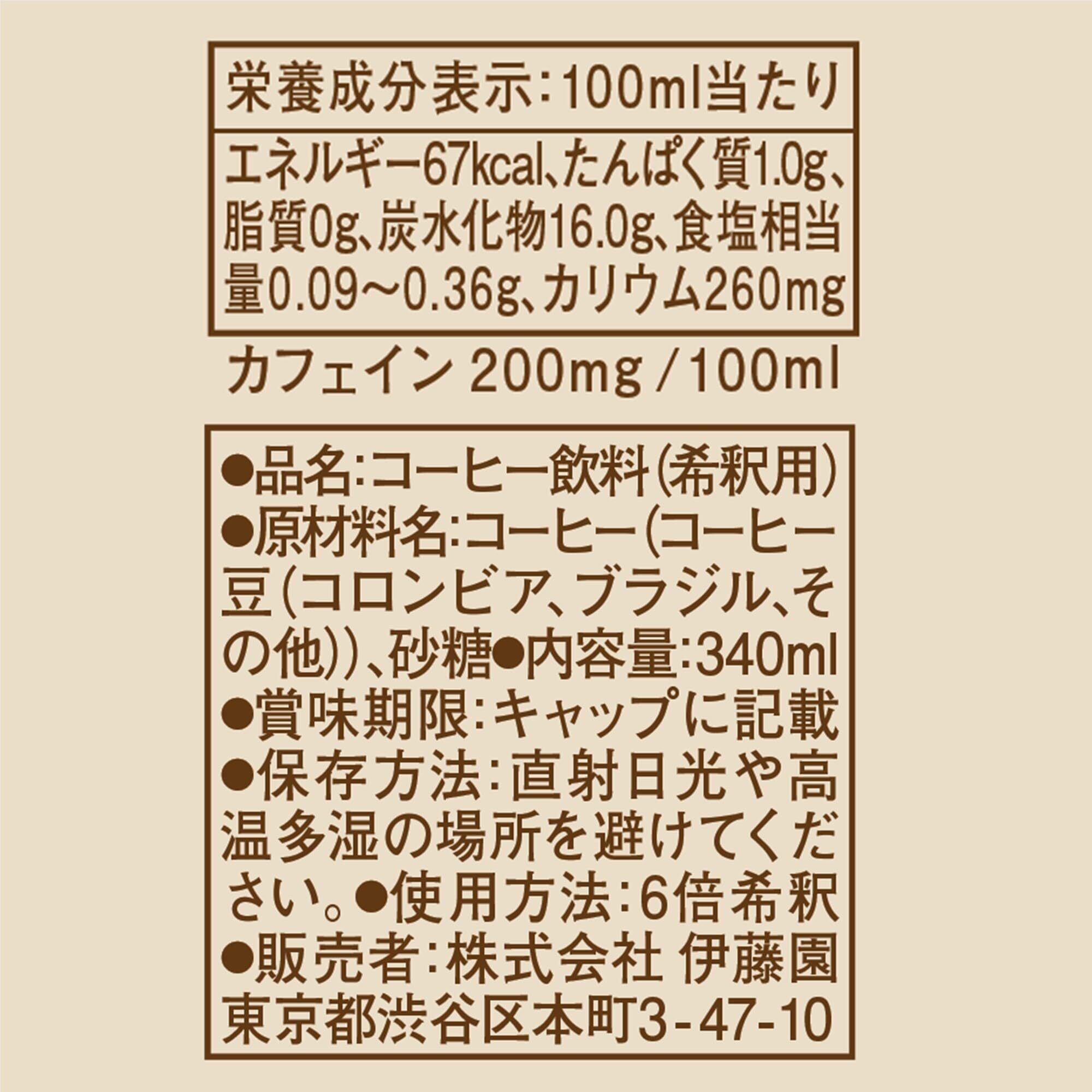 手軽においしいコーヒーが飲みたいあなたにおすすめなコーヒーベース。 ●牛乳に注ぐだけで美味しいカフェラテができる、希釈用の微糖コーヒー。 ●忙しい時でも、手軽に美味しいコーヒーをお楽しみいただけます。 ●エスプレッソ抽出でコーヒー豆のおいしさをぎゅっと濃縮しました。 ●1本で約12杯分のカフェラテお作りいただけます(コップ1杯当たり170mlとして)。 ●甘さひかえめの希釈コーヒーや濃縮・ポーションコーヒーをお探しの方におすすめの商品です。