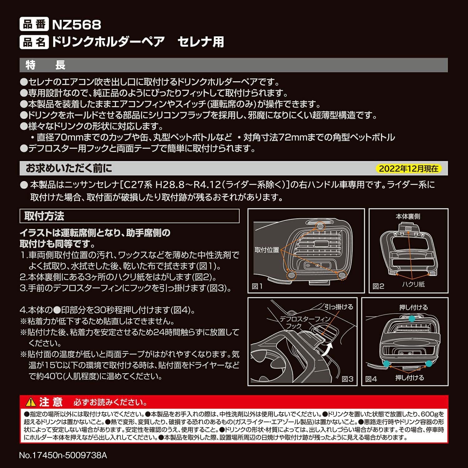 品名 NZ 568 ドリンクホルダーペアセレナヨウ ブラック