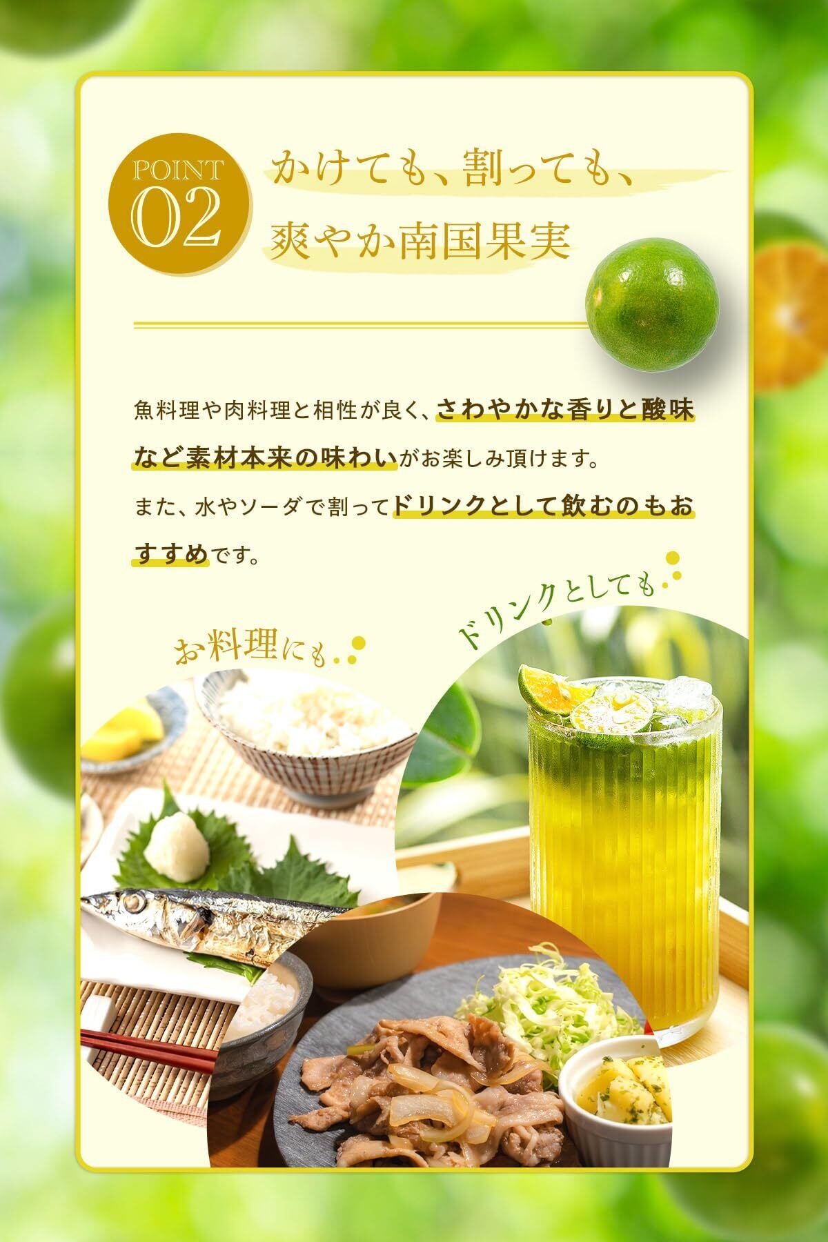 【オリジナルブレンド100%果汁】 本製品は沖縄県北部一帯の通称「やんばる」で育まれたシークヮーサー果汁をブレンドしたミックスジュースで魚料理や肉料理と相性が良く、さわやかな香りと酸味など素材本来の味わいがお楽しみ頂けます。また、水やソーダで割ってドリンクとして飲むのもおすすめです。