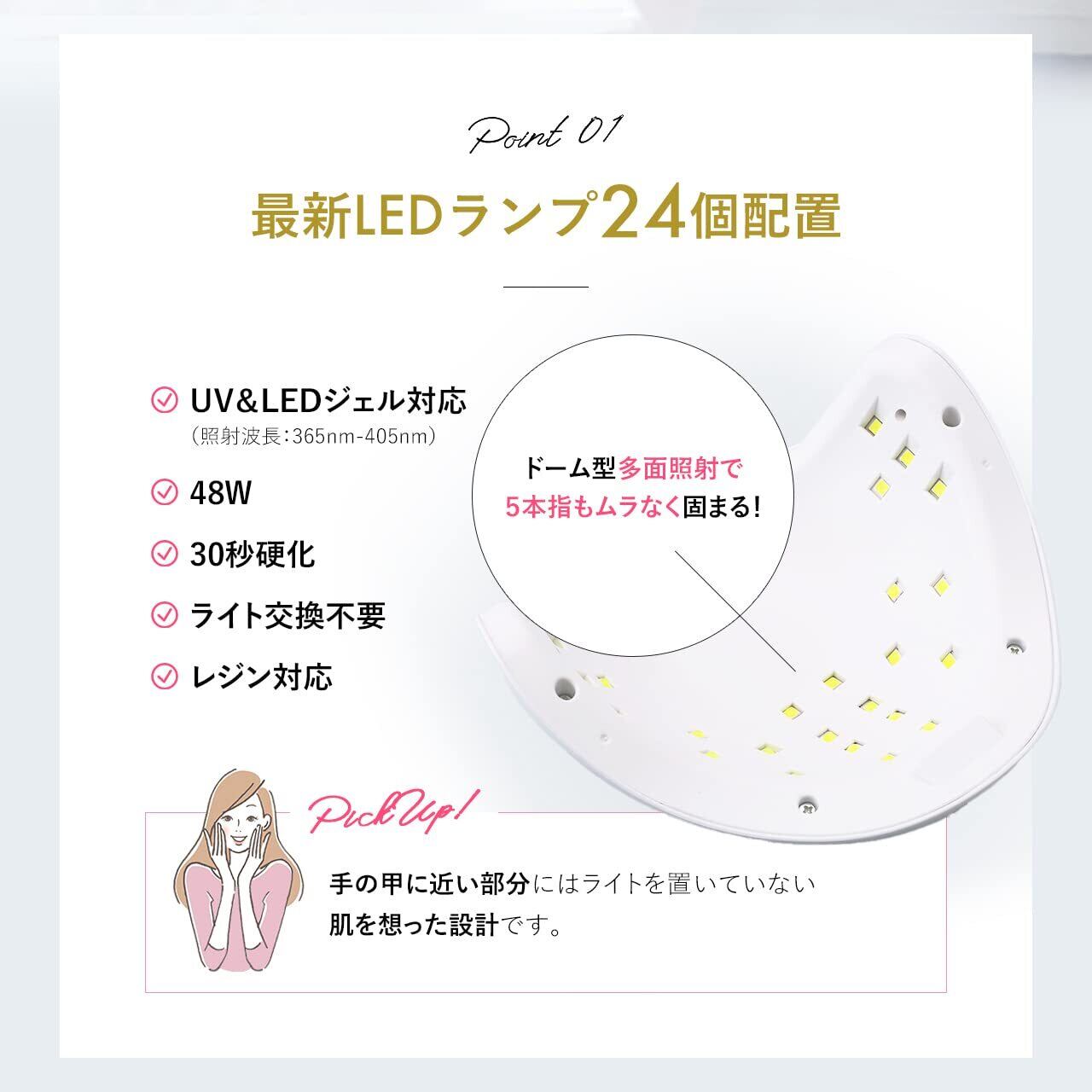 La Curie LED & UV ネイルライト 48W 業界注目低ヒート機能 ジェルネイル 自動感知センサー ジェル対応 レジン用 12カ月 & 日本語説明書 & プロネイリスト監修ネイルレシピ付き LaCurie003 (ホワイト)