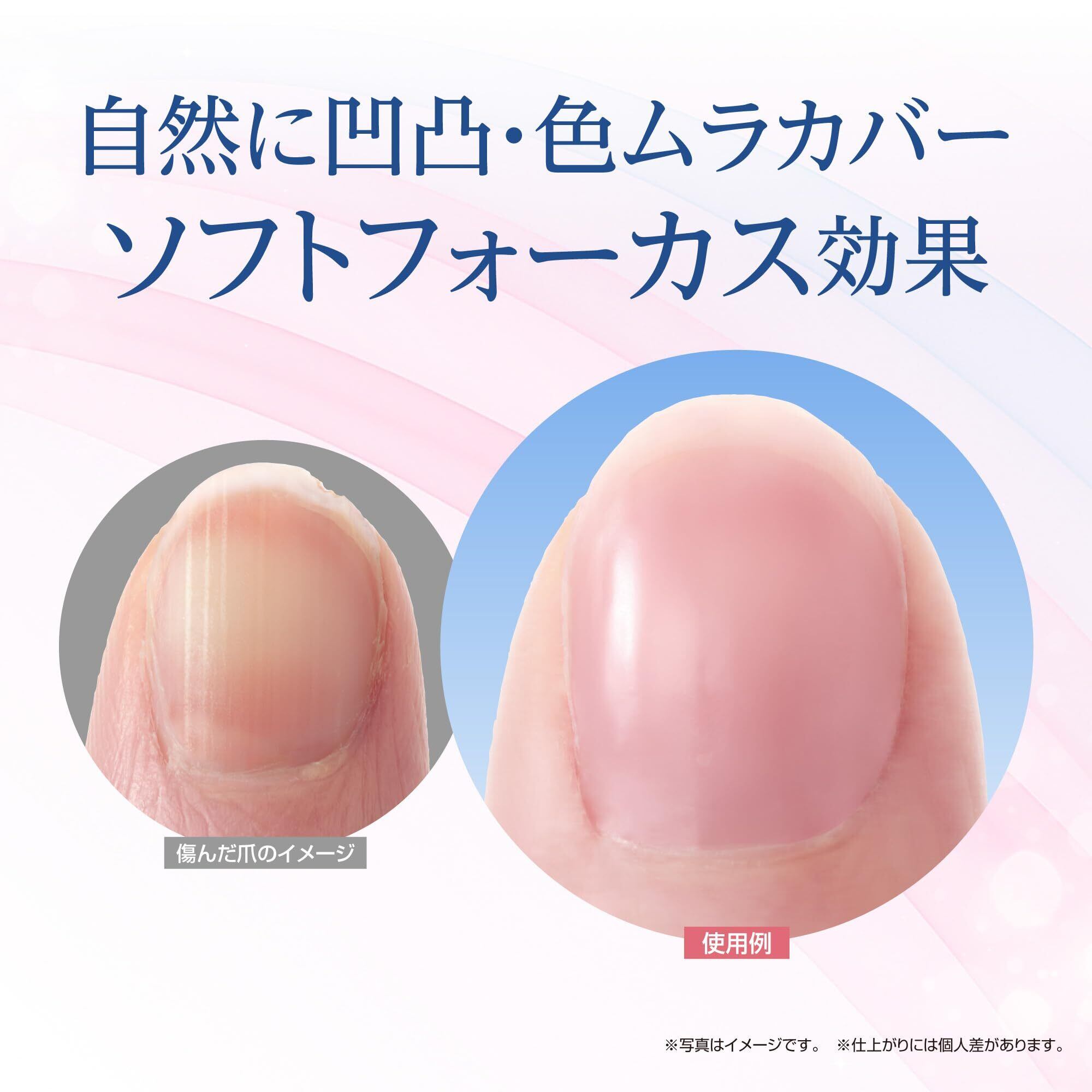 ソフトフォーカス効果で凹凸・ムラを自然にカバーし、ほんのり血色感を与えるピンクで、まるですっぴんの爪がきれいな印象に。