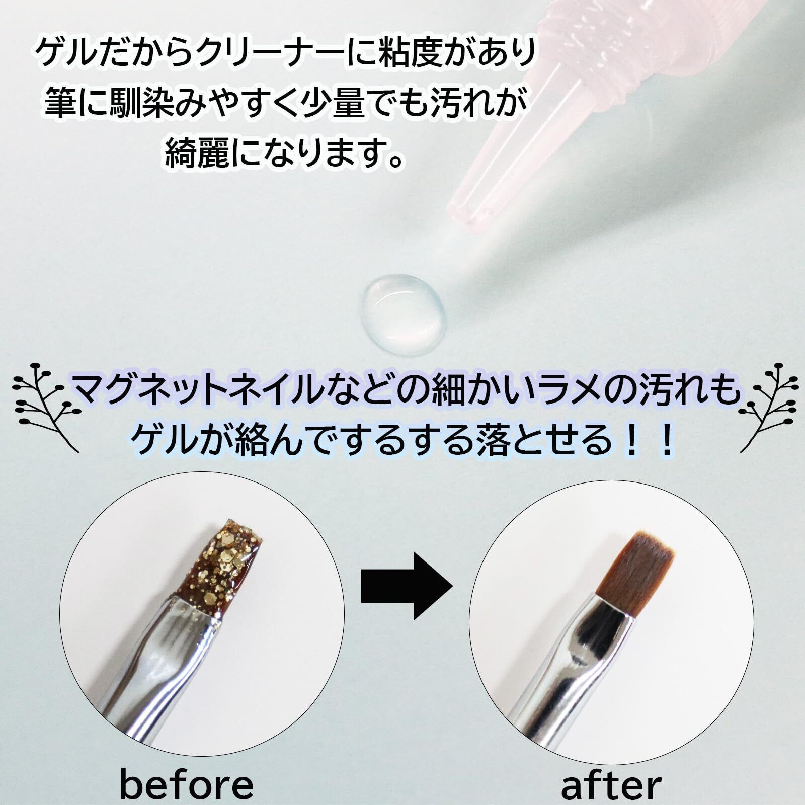油分の効果で筆の乾燥を防ぎ毛先がしなやかにまとまります。 マグネットネイルのような細かいラメも濃いカラージェルの汚れも綺麗に落とせます