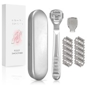 【切れ味と安全性を両立】 刃物を使うのはちょっと怖い…そんな方でも安心して使ってほしいから。適度な重みとフィット感のあるデザインで軽い力でもスムーズに削るボディデザインに加え、細部まで精密加工された刃を採用。無駄に皮膚を傷つけることなく必要な角質だけを除去するので初心者でも扱いやすいかかと削り・うおのめ除去アイテムです。(※お肌を傷めないよう、力を入れすぎず適度な頻度でご使用ください)