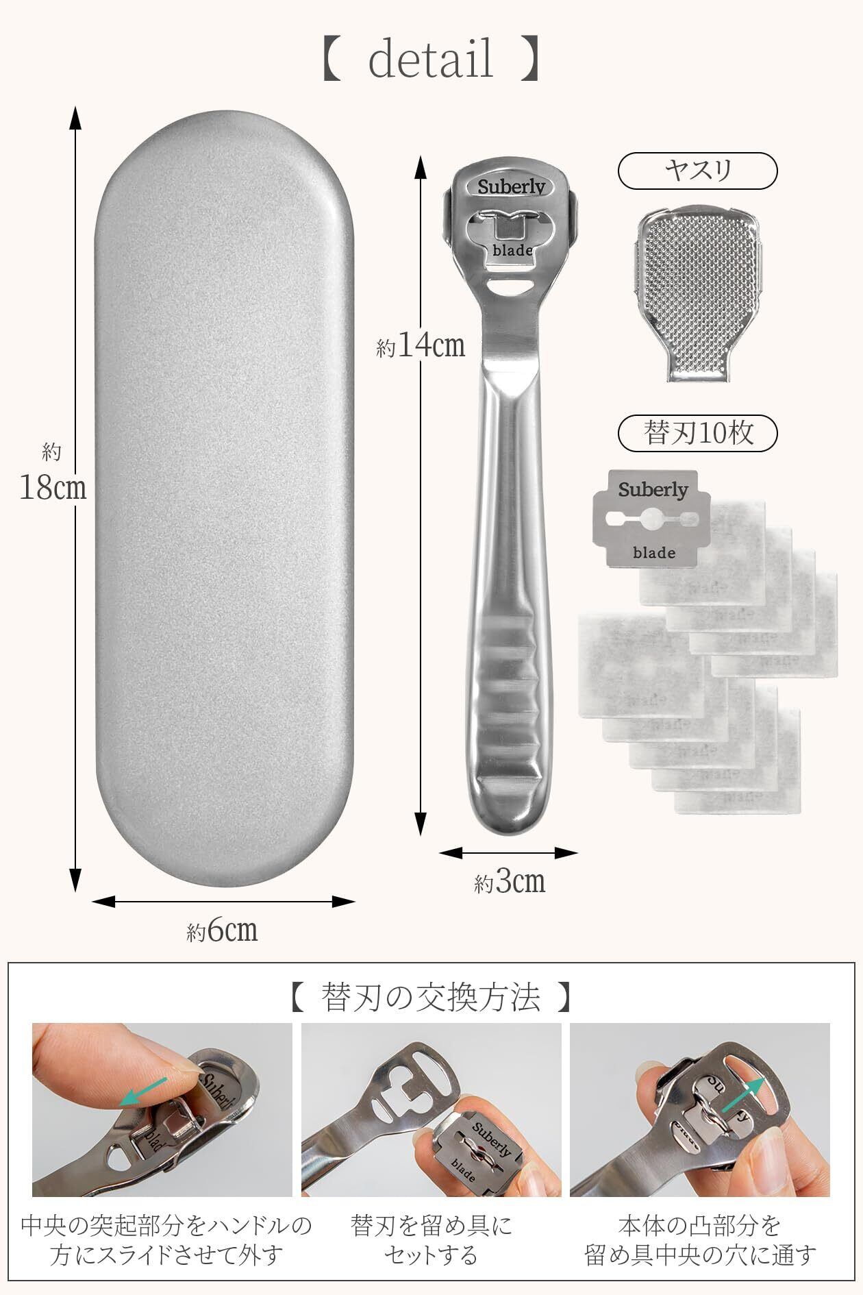 【硬い角質を削り取ってなめらか素足へ】角質削り 魚の目 カッター かかと削り 足の裏 角質取り かかとケア 【専用ケース&替刃10枚付】