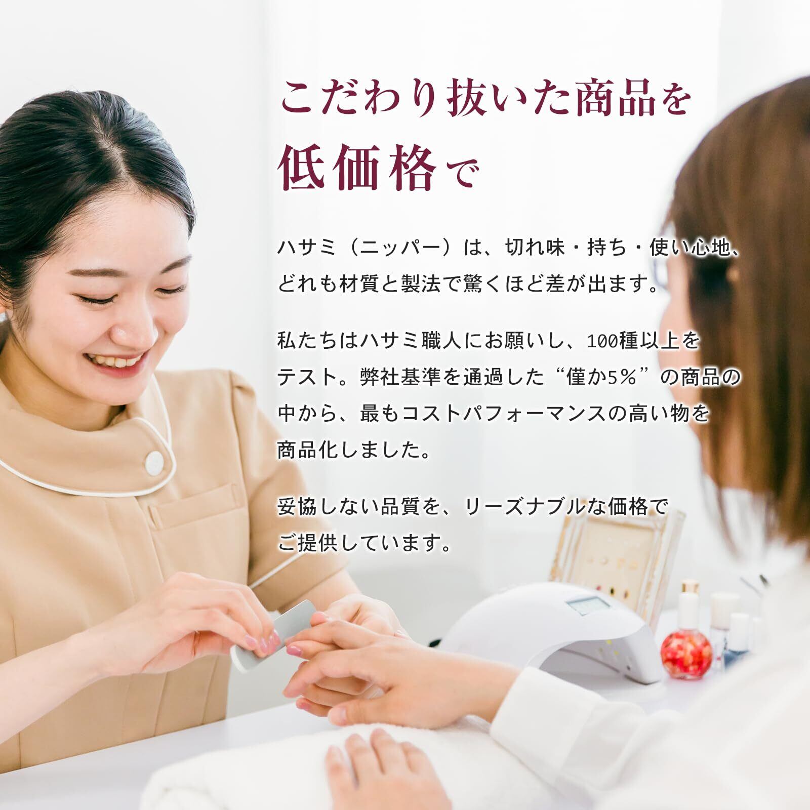 【甘皮ニッパー 】は理美容専門のハサミ職人に監修頂きました。見た目どれも同じように見えるニッパーですが、使ってみればその差は一目瞭然。本当に良いものはストレスフリーな使い心地です。La SACHIの 甘皮ニッパー は滑らかなダブルスプリングのハンドル、左右の手ともに持ち易いよう長めの設計、厳しいテストにパスした切れ味、更に刃先を1.5mmの噛み合わせにすることで、余計な皮膚をひっぱったり、切り落とすことなく、細い甘皮やささくれを狙った箇所だけスパッと切り落とせます。