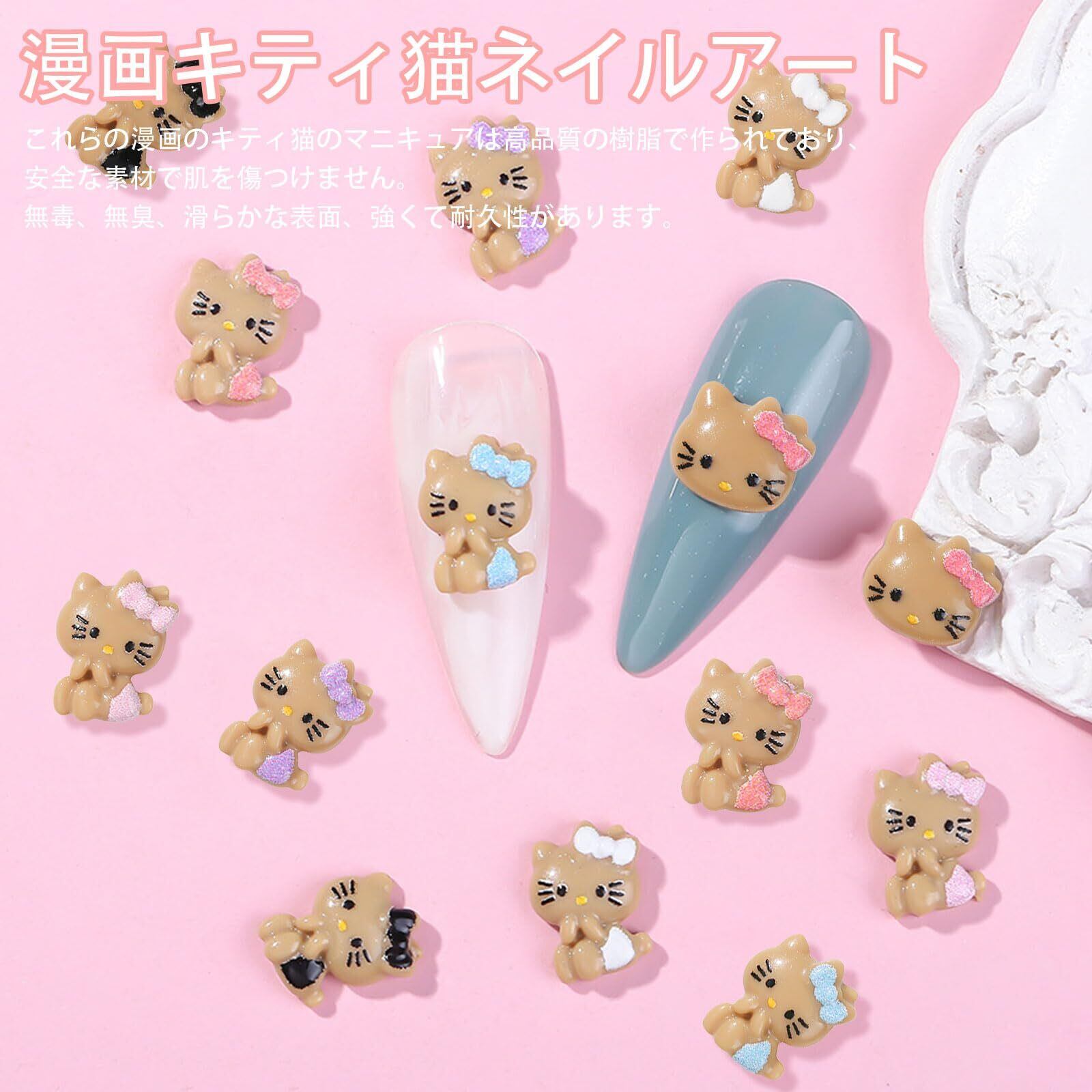 【ネイルパーツ セット】キュートでオシャレなキティネイルパーツ。家庭用とプロのネイルサロンに適していて、ファッショントレンドの女性のネイルデザインにぴったりです。