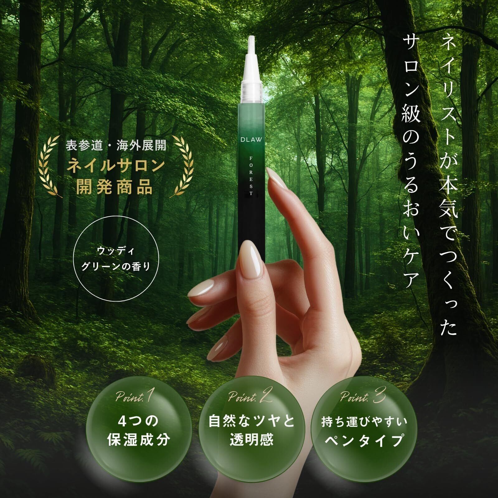 【トップネイルサロン開発】DLAW ネイルオイル(フォレストの香り)ペンタイプ 甘皮ケア ネイルケア 保湿 爪用美容液 ハイポニキウム