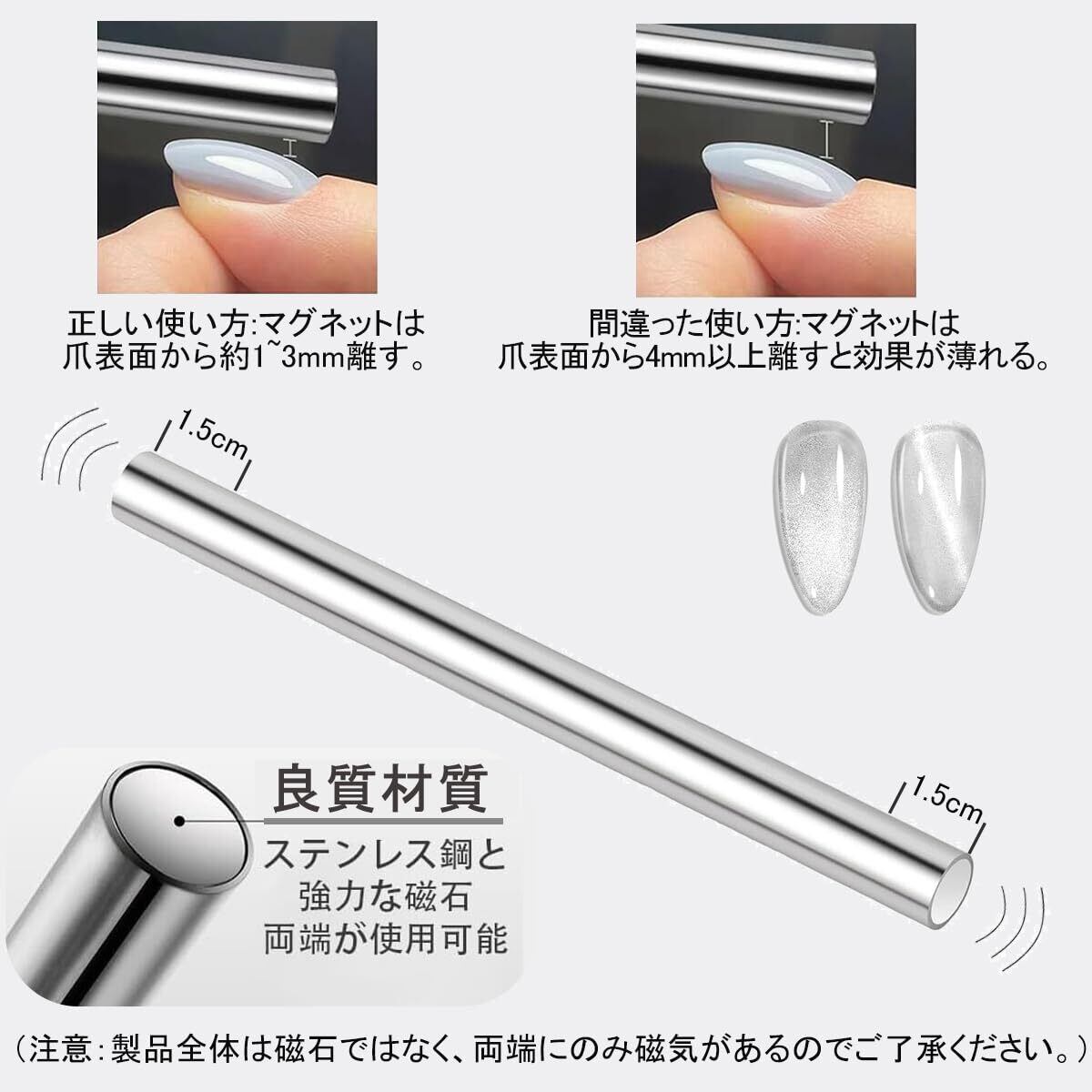 【良質材質】本体は防錆ステンレス鋼で、高強度磁心を組み合わせて、磁力は持続的に安定して、繰り返し使用して変形せず、色褪せない。磁性吸着力が強く、ネコ目用ゲル中の金属粒子を急速に凝集させ、光の効果をより集中させ、線をより鮮明にすることができる。