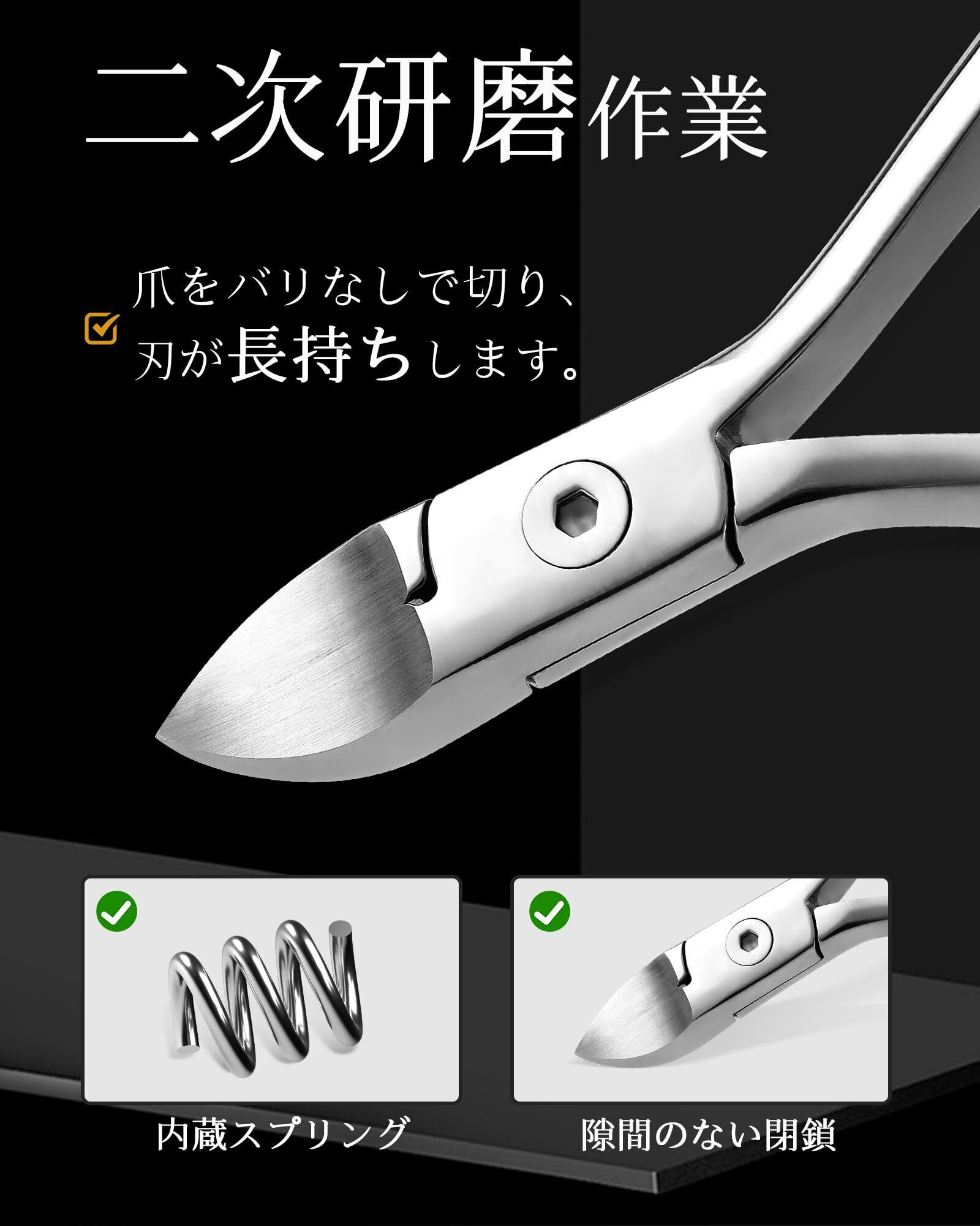 【ニッパー 爪切り】Tisojpodの爪切りは切れ味を確保しながら爪切りを長く使い続ける二次研磨作業をします。頻繁な使用にも耐え、折れやくすみを防ぎます。巻き爪、厚い爪、硬い爪などのケアに適した高品質爪切りです。