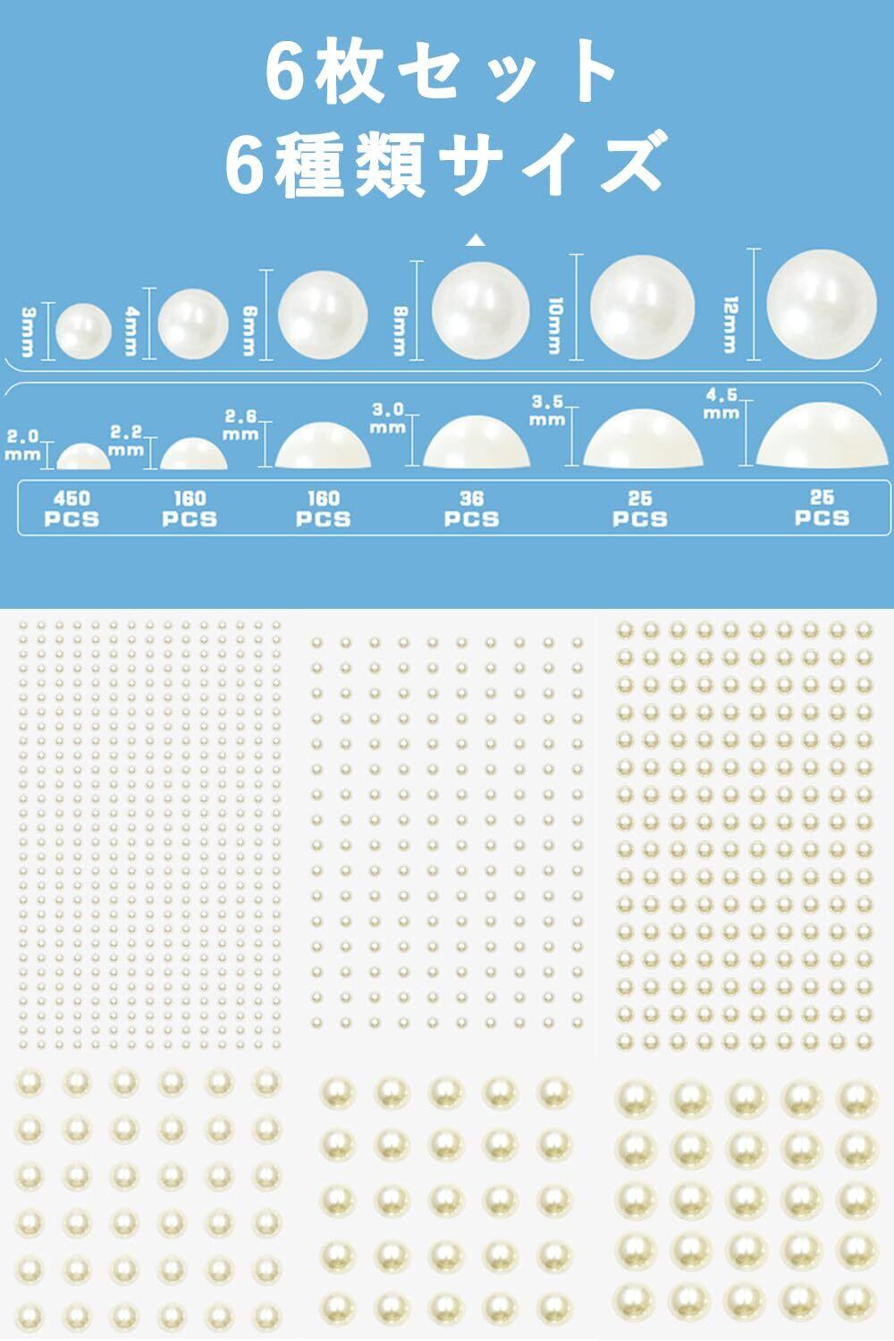 【在庫セール】harukita パールステッカー パールシール ステッカー 真珠 フェイスステッカー 自己粘着性 ネイルパーツ DIY 化粧用 携帯電話装飾 6枚セット 6サイズ | Lumisfera
