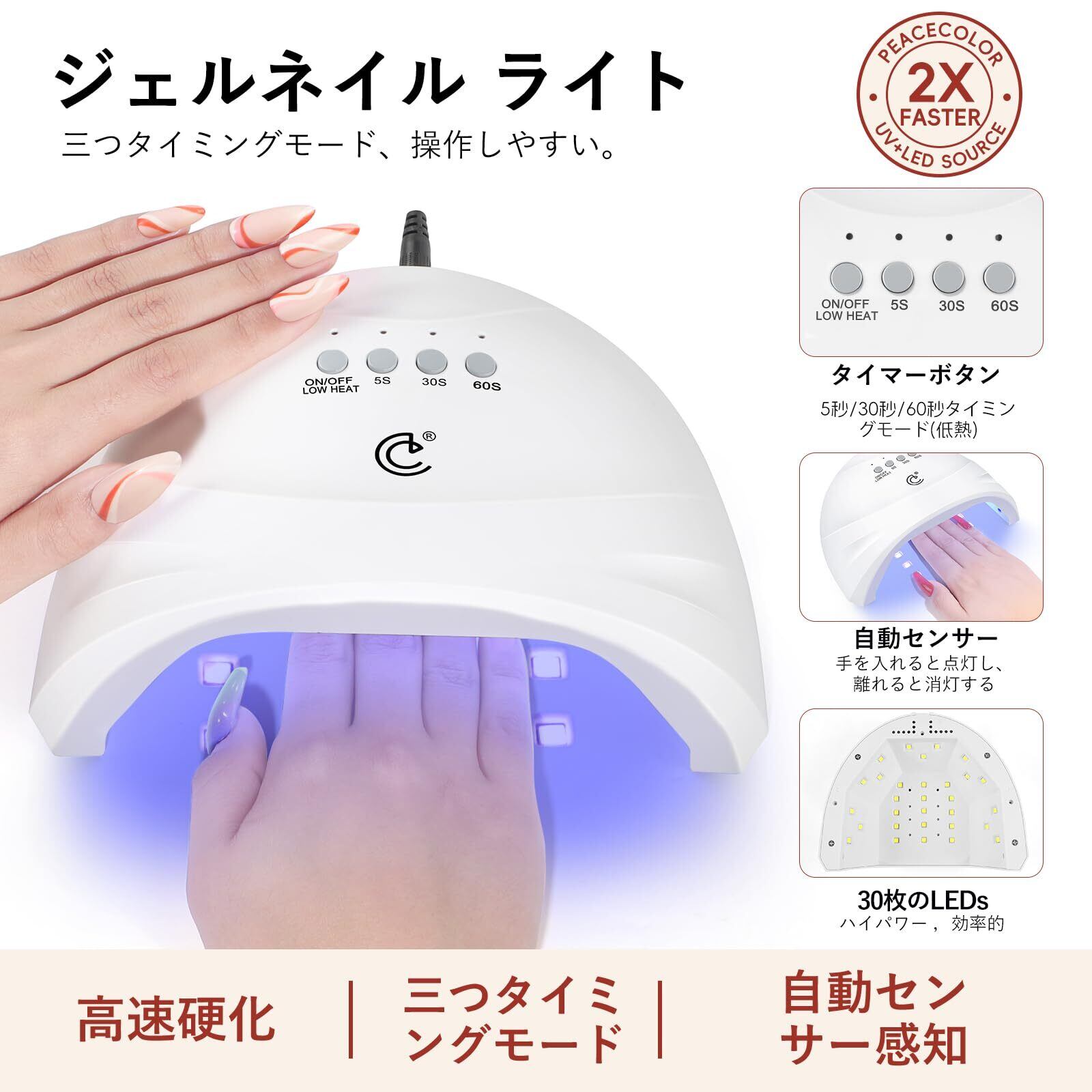 【特価商品】PEACECOLOR ジェルネイルキット 全59点 35色ジェルネイルセット ジェルネイルカラー ネイルマシン ネイルライト 5PCトップコート&ベースコート付き スタータキット セルフネイル 初心者 ギフト | Lumisfera