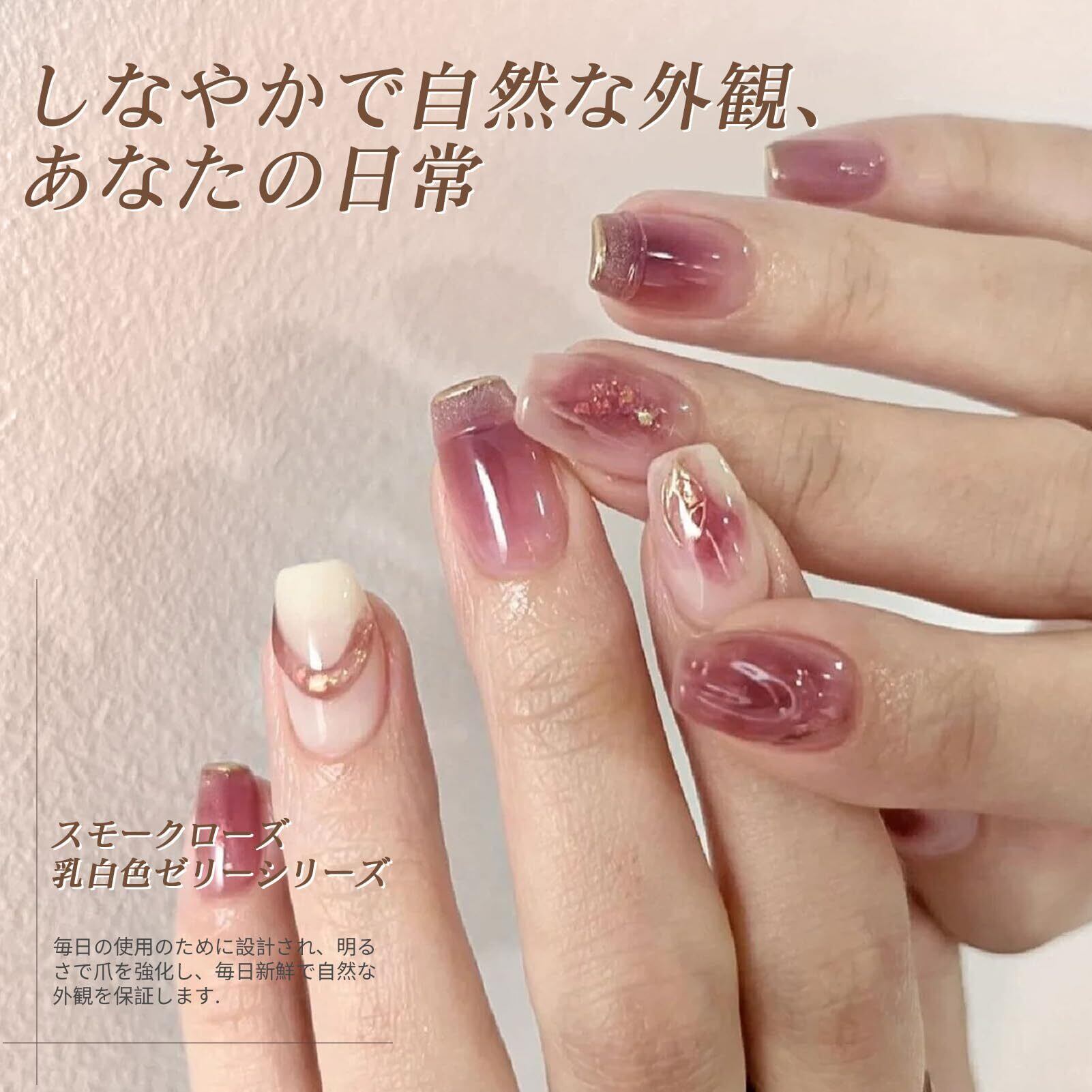 【ゼリースタイルのジェルネイル】オパールゼリーな質感にこだわったネイルジェル、透明感たっぷり。さりげなく洗練された透明感のあるヌードスタイル。