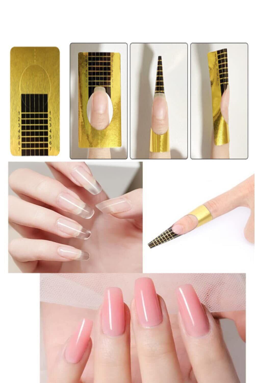 【高品質素材】ネイルフォームは高品質の良い紙で作され、ほど良い硬さとしなやかさがあり、ふにゃふにゃにならないで綺麗にネイルの長さだしを仕上がります。