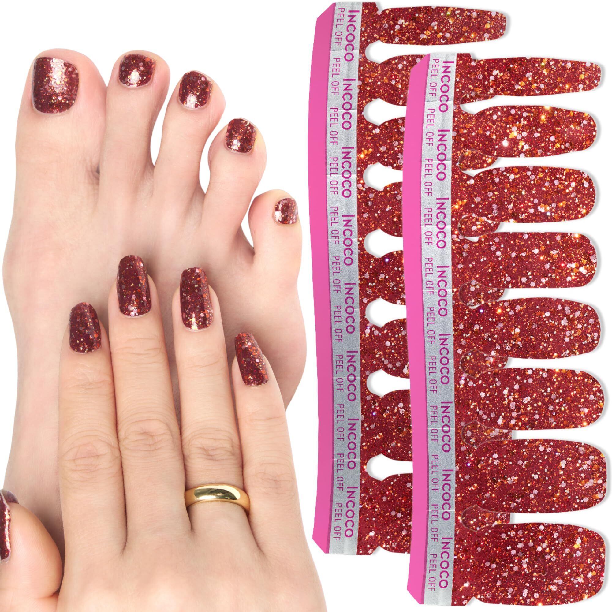 INCOCO インココ ネイルシール 貼るだけ マニキュア 硬化不要 キャラメル アップル Caramel Apple レッドラメ ハンド&フット兼用 速乾 ペディキュア