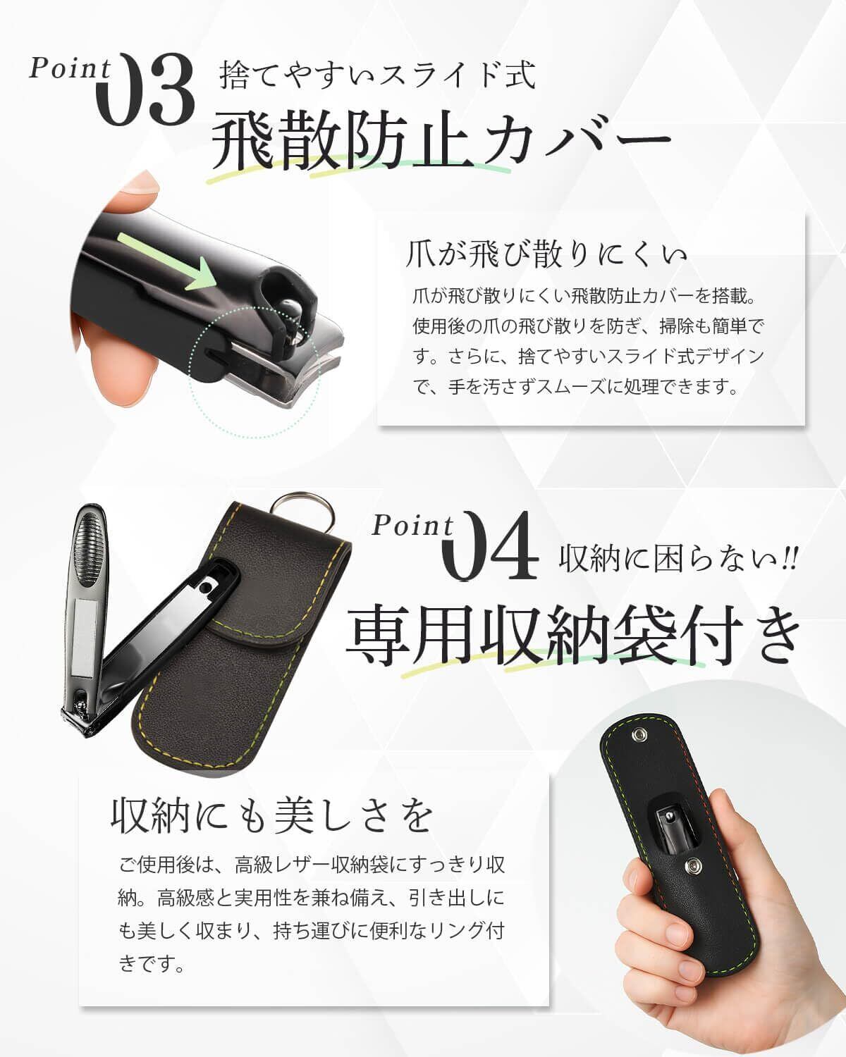 【特価商品】SOMOTO 爪切り 高級 爪 切り 【飛散防止・特大開口・驚くべき切れ味】 ツメキリ 軽い力でスパッと切れる つめきり ステンレス製 防水 手足用 男女兼用 レザー収納袋付き | Lumisfera