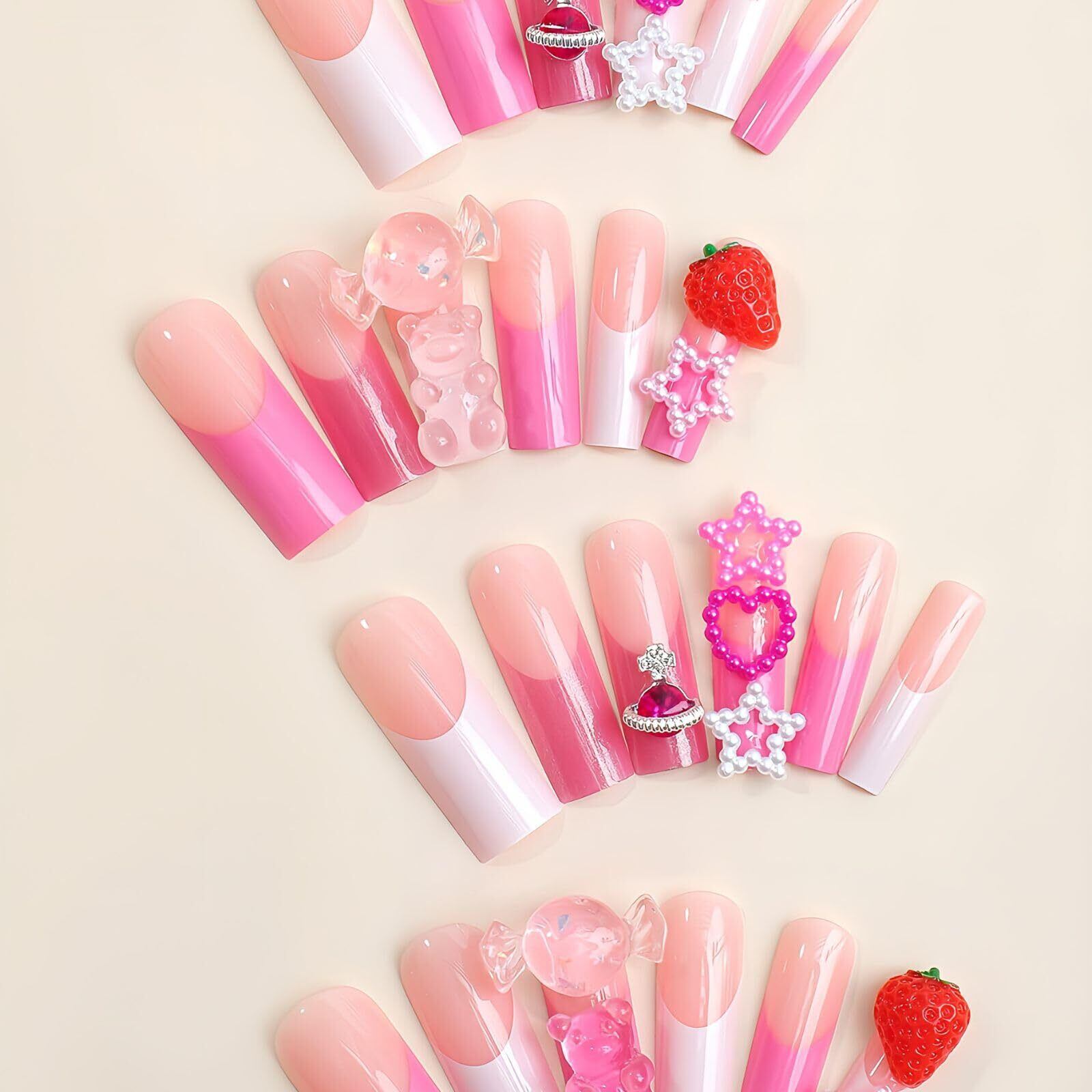 Liberte555 ネイルチップ ギャル 子供 ロング 付け爪 長い 地雷系 明日届く 黒 可愛い キラキラ シール グッズ(ギャルマルチカラー10, エクストラロング)