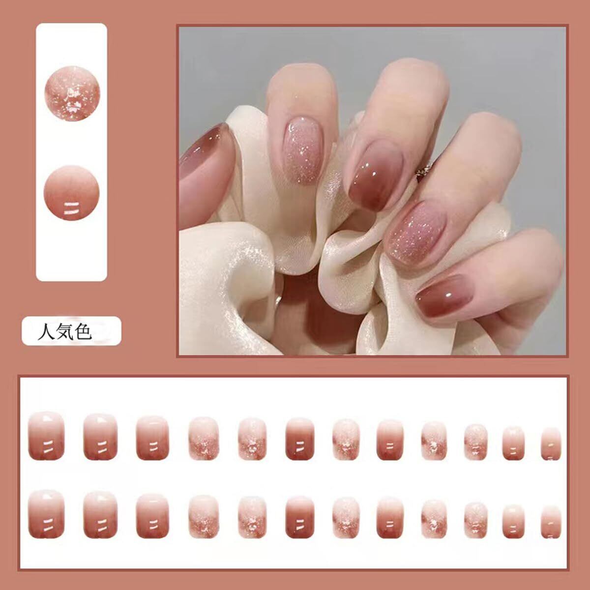 CQJSYL ネイル チップ 24枚入り ネイル用品 ラウンドチップ ネイルチップ ショート雰囲気色 かわいいつけ爪 デザイン 小さく短め バレエ 短め 貼るだけつけ爪用輸入両面テープ48個付き(浅モカ色)