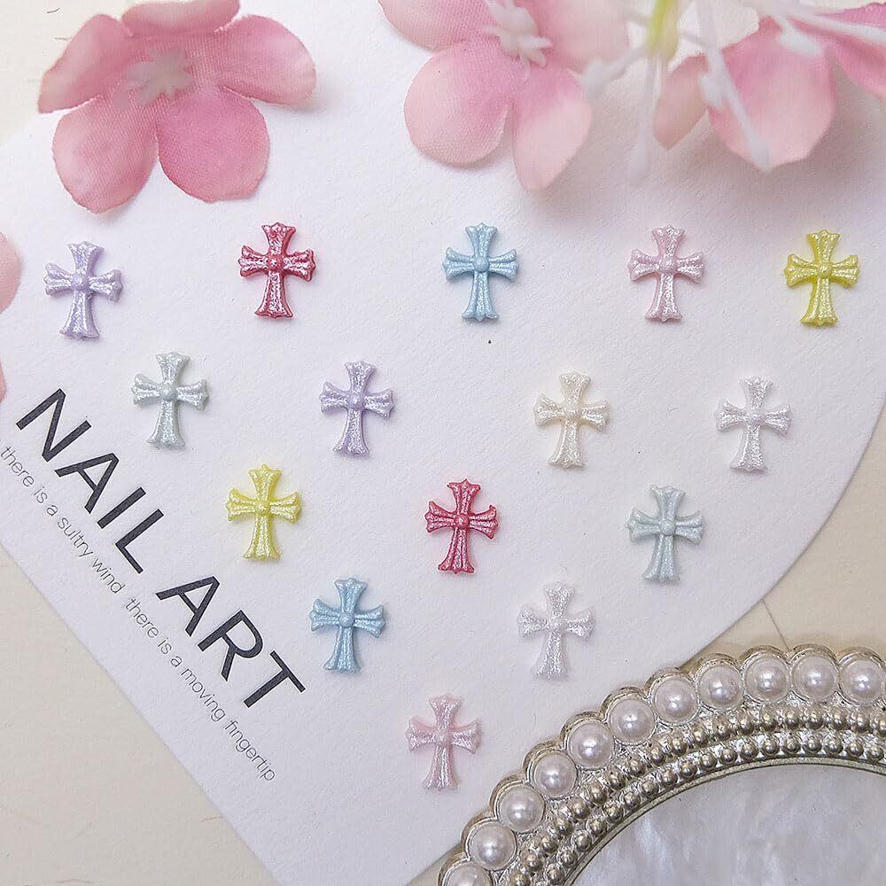 JIMIGUGU ネイルパーツ十字架 マカロンカラー 100個入 レジンネイルアクセサリー マット ジェルネイルパーツ (ランダムカラー)