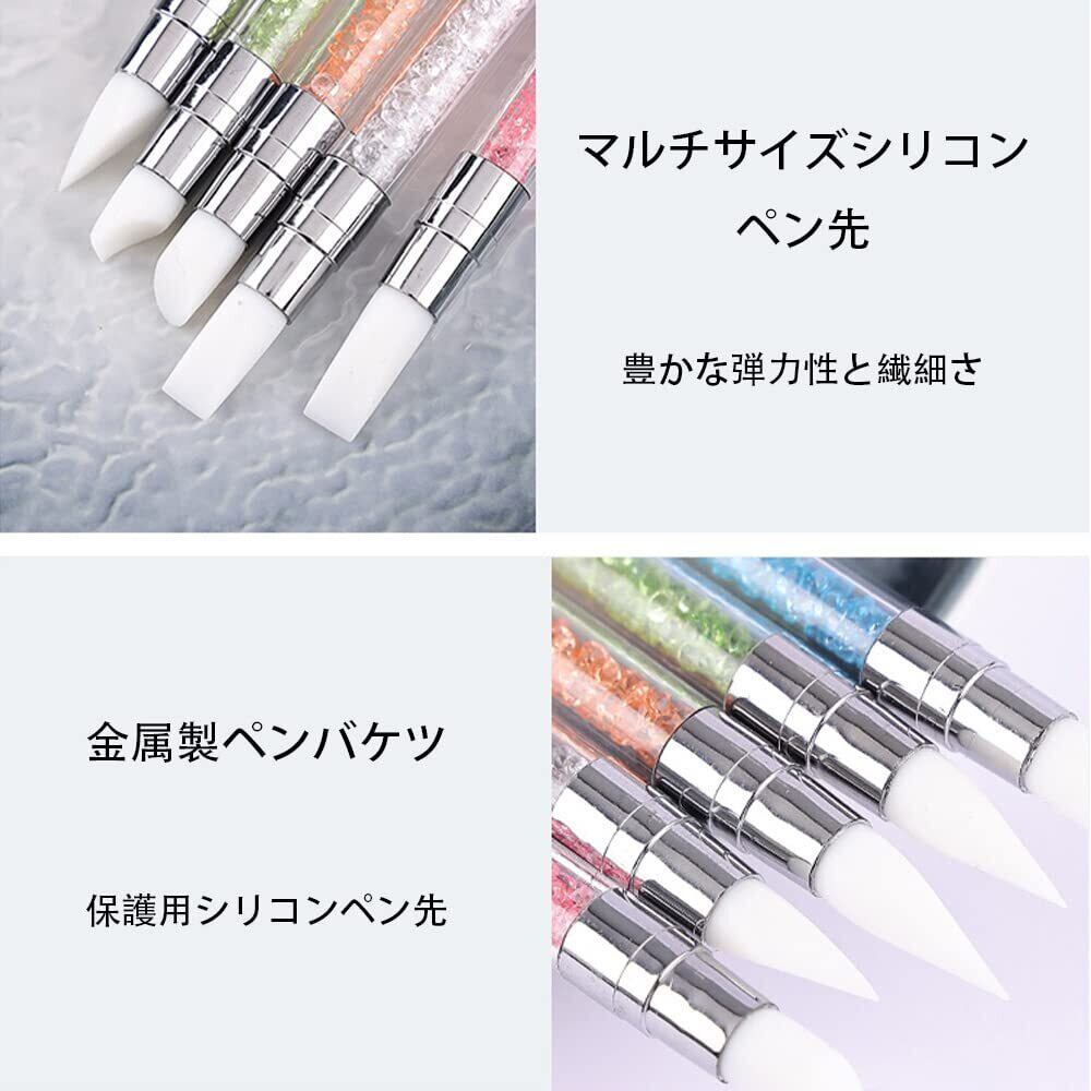 "1.【仕樣】サイズ: 約13.5 x 1 cm(L*W)。材質:アクリル+シリコン。シリコン製の筆先ので、洗浄が簡単。 2.【セット内容】5種5本セット(両端ヘッド) 、筆先は5種異なるの形状でご各要望が満足できます。 3.【新型筆先】ネイルの各用途(ネイル、透かし彫り、雕刻、エンボス)に対応します、フレンチライン修正、ジェルやラメをふき取るだけで綺麗に。 4.【多用途】ネイル用筆はもちろん、絵具としても大活躍、今流行の新型シリコンペイントブラシです、油絵や水彩画、アクリル画などに使えます、車模型、フィギュアなどの塗装など細かい作業にもピッタリです。 5.【 難しいラインアートにも最適】 ラインアートネイルはネイル界でも、欠かせない上品で華麗なネイルアートです。綺麗にラインを引きたい…けど、なかなか綺麗な線を引くのは難しいですよね。"