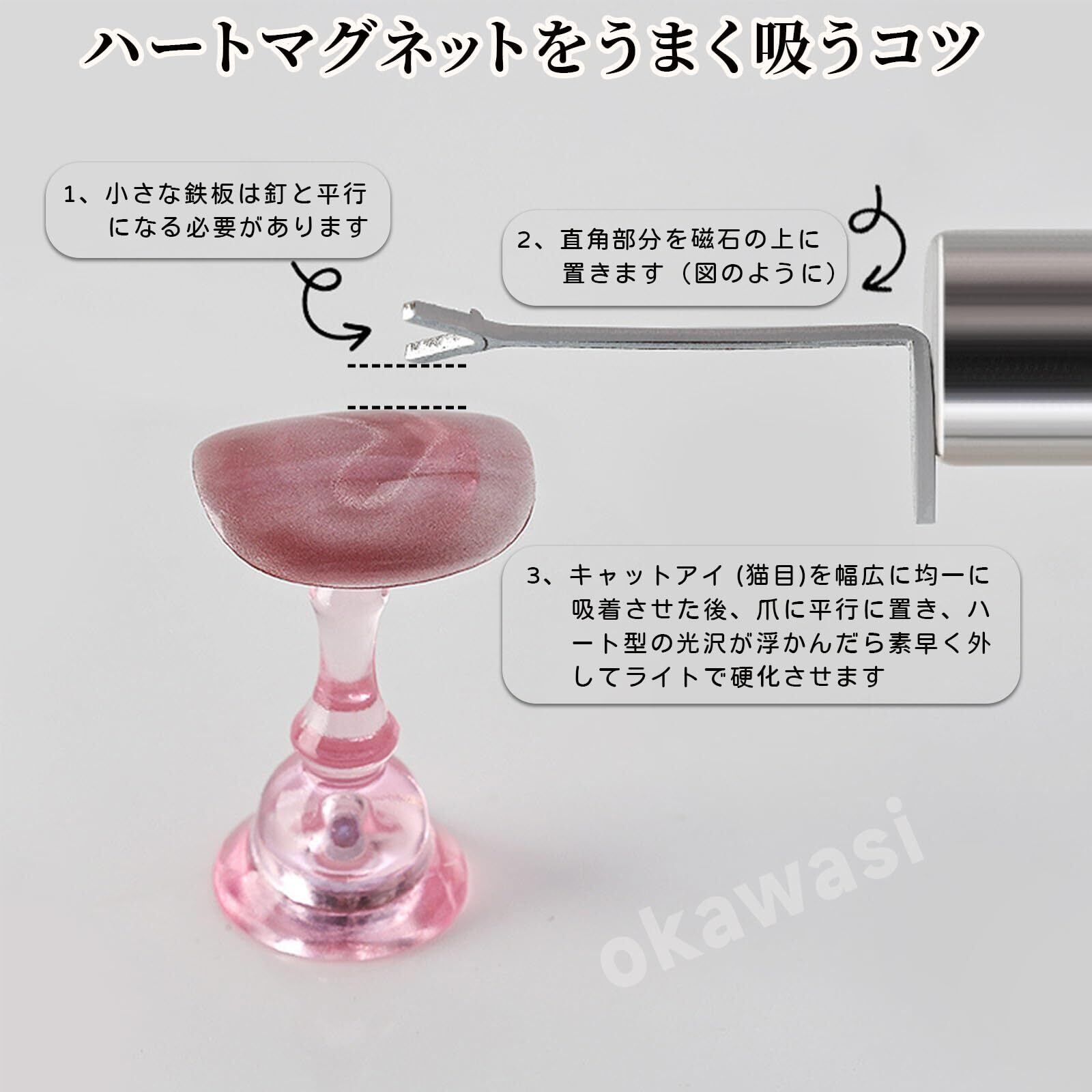 【3種類のネイル効果を簡単に実現】この3点キット(Y字型マグネット + 両頭ペン)を使用すれば、ハート型、花形、クリアなキャッツアイ効果のネイルアートを簡単に作り出せます。目を引くプロのようなデザインを自分の爪で実現し、ネイルアートのバリエーションを豊かにします。