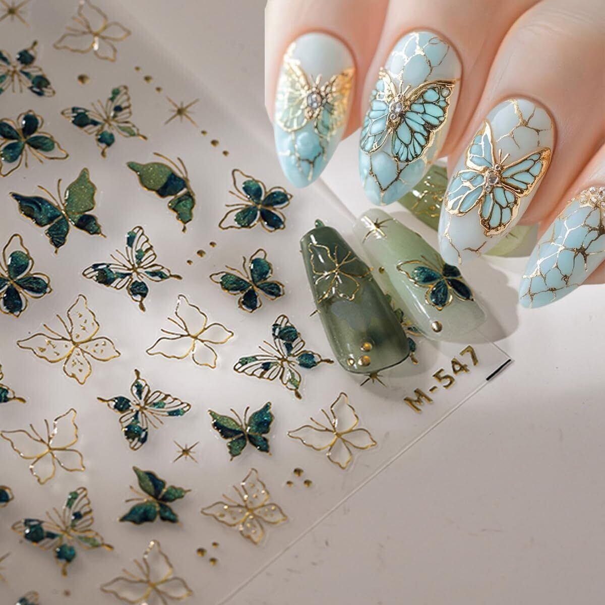 Honnydend ネイルアートシール 2枚セッ 5D夏の蝶 ネイルアートステッカー 自己粘着 春夏デカールデザイン女性女の子子供のためのネイルアート装飾