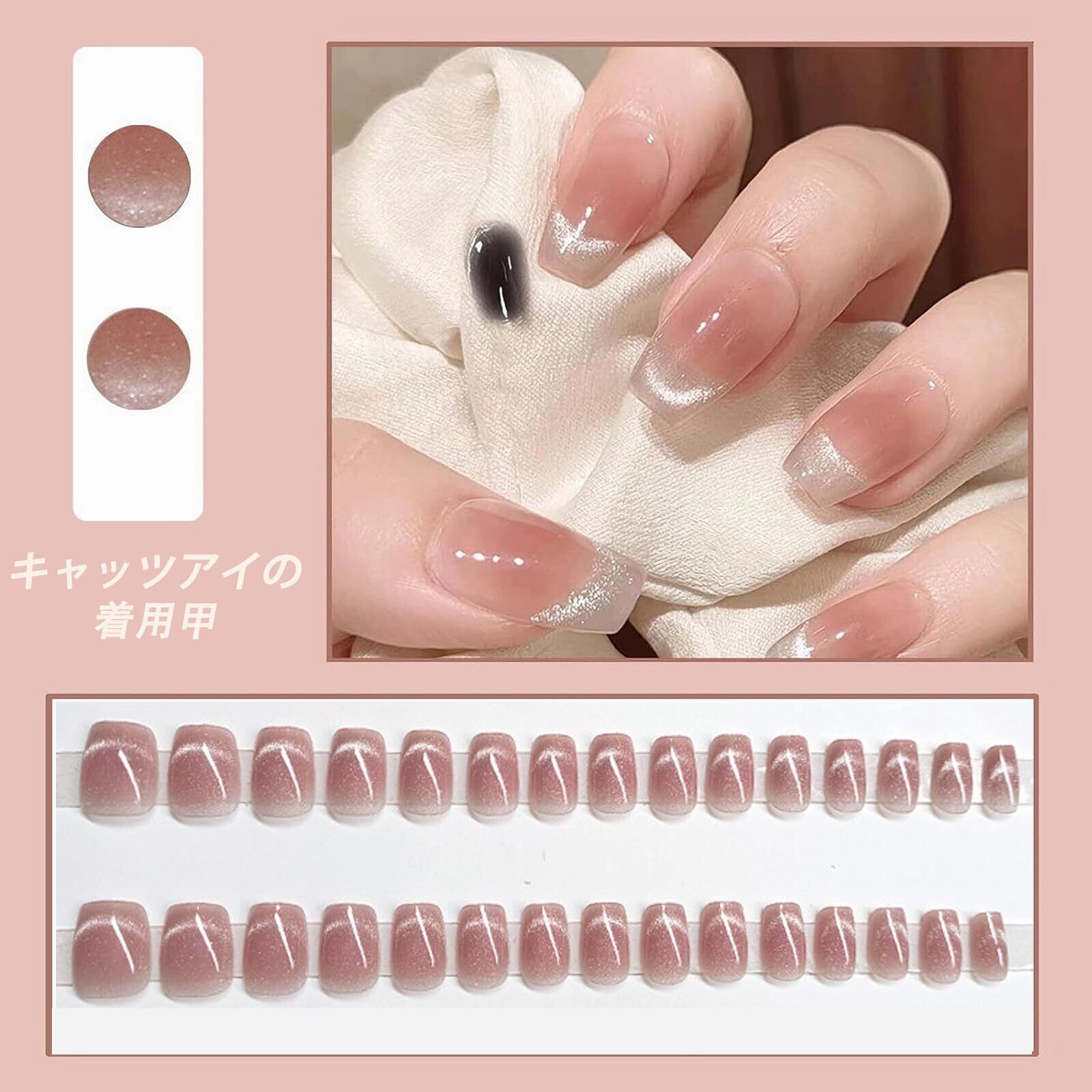 【高品質素材】キャッツアイスタイルのつけ爪は、高品質のABS素材と環境に優しいネイルグルーで作られており、ソフトで軽量、手のカーブにフィットし、防水、破損防止など、使いやすいです。使いやすく、ネイルサロンに入る必要がなく、自宅で好きなネイルアートを完成できます。