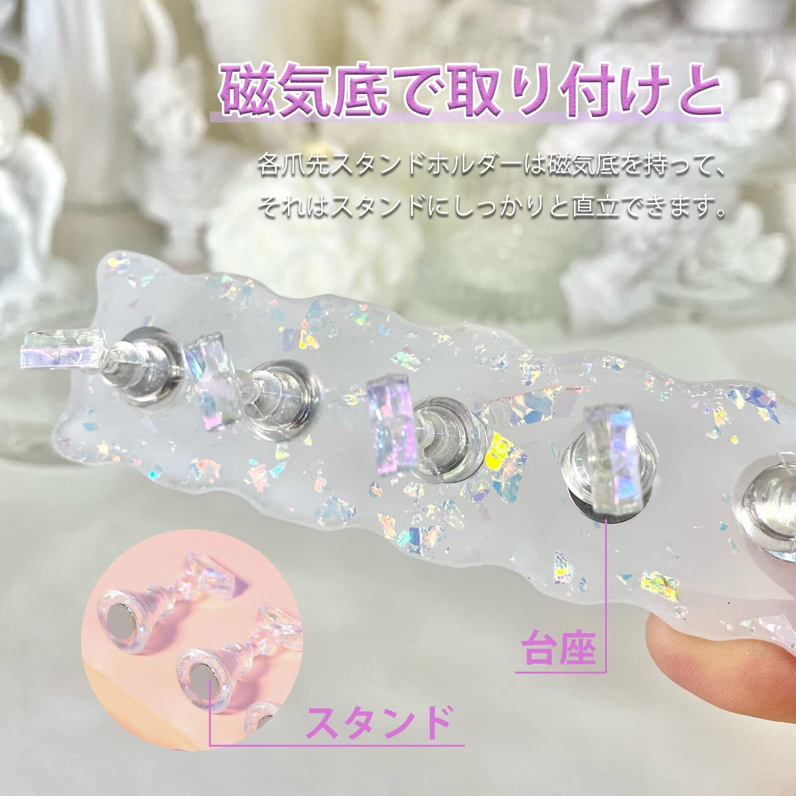 【セット内容】スタンドベース*1、ネイルチップスタンドホルダー*5。(サイズ:画像をご参考ください。)