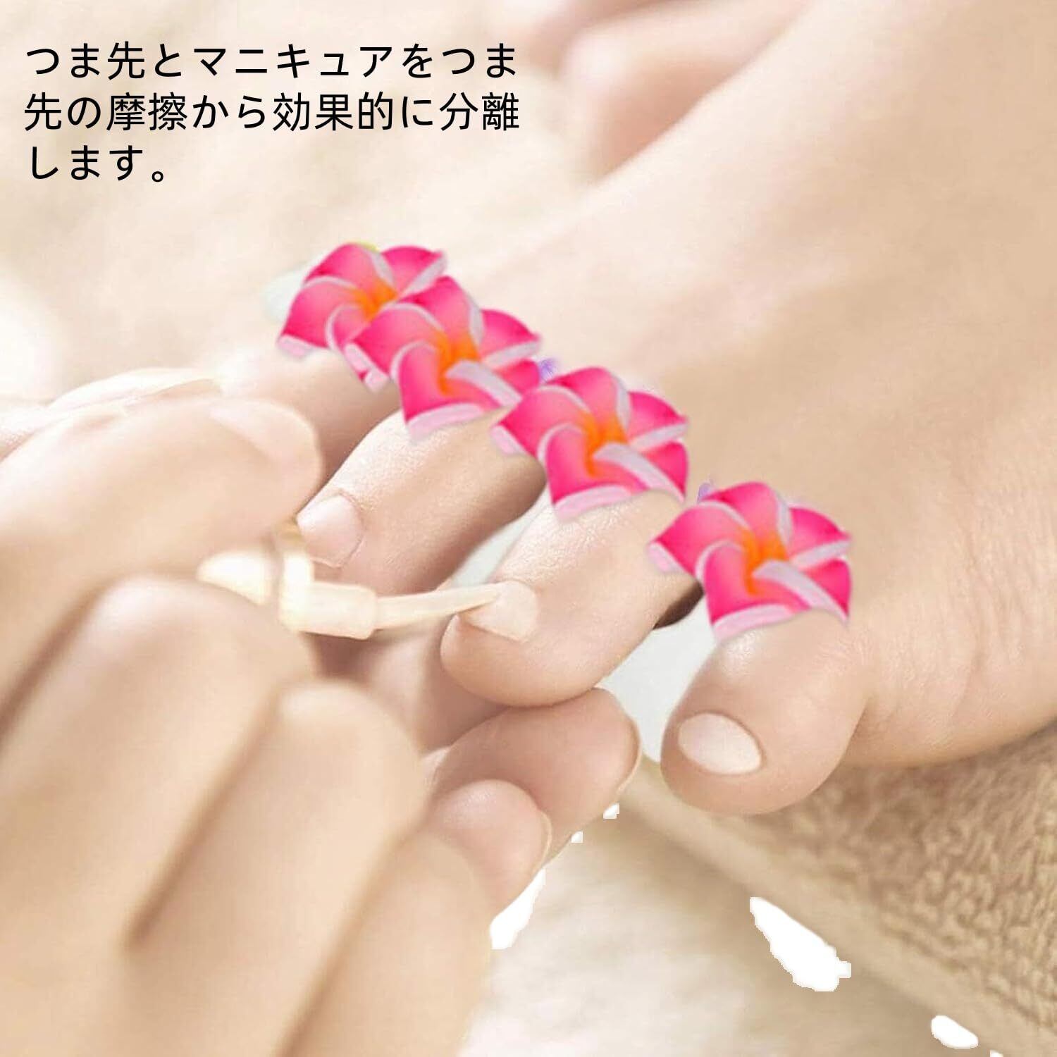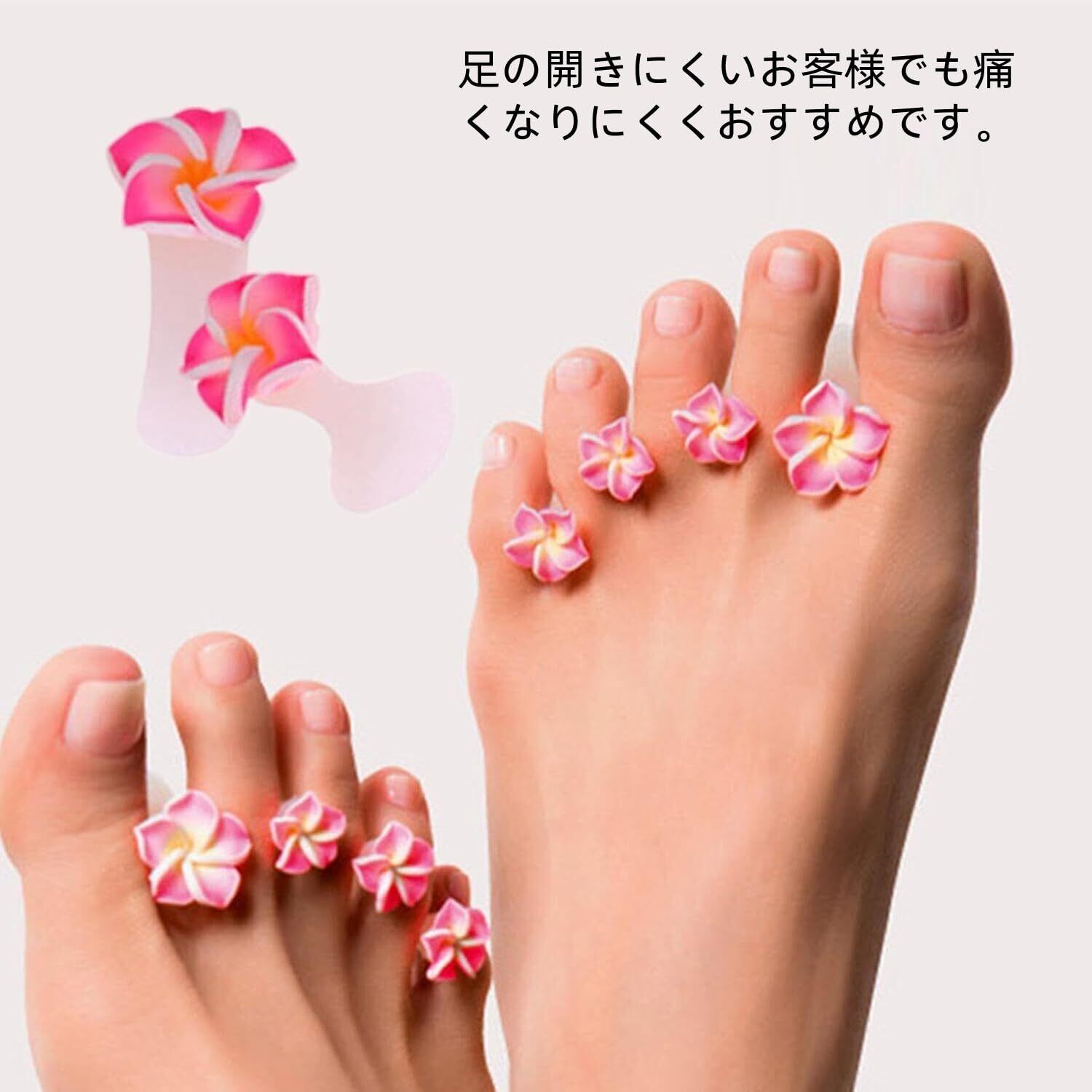 【フットネイルの際に】指同士が重ならないので、ジェルやマニキュアが塗りやすくフットケアやフットネイルの必須アイテムとなっております。かわいいモチーフ付きで撮影用の小道具としてもお使いいただけます。
