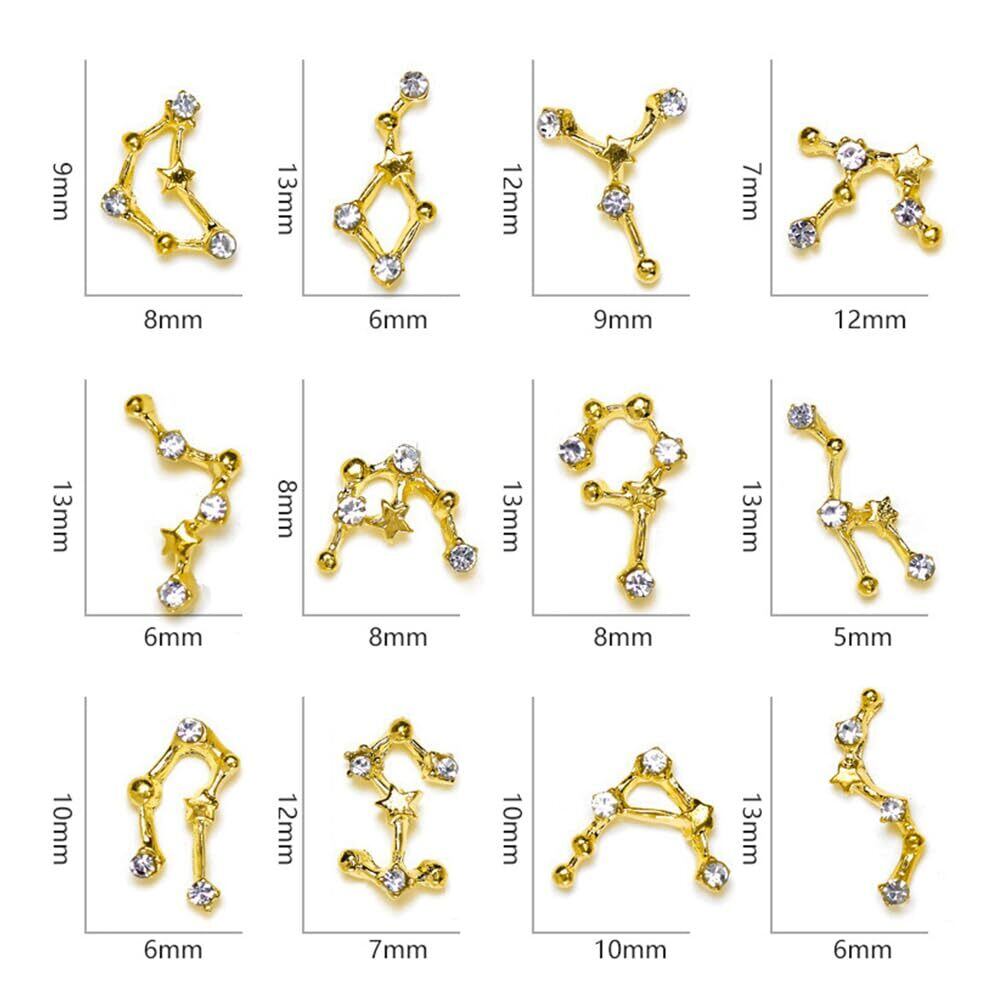 HOLIDYOYO ネイル スタッズ ネイルパーツ ネイルアート用 星座チャーム ラインストーン付き 星座メタルパーツ ステッカー DIY 手作り用 ネイル アクセサリー 3個入り