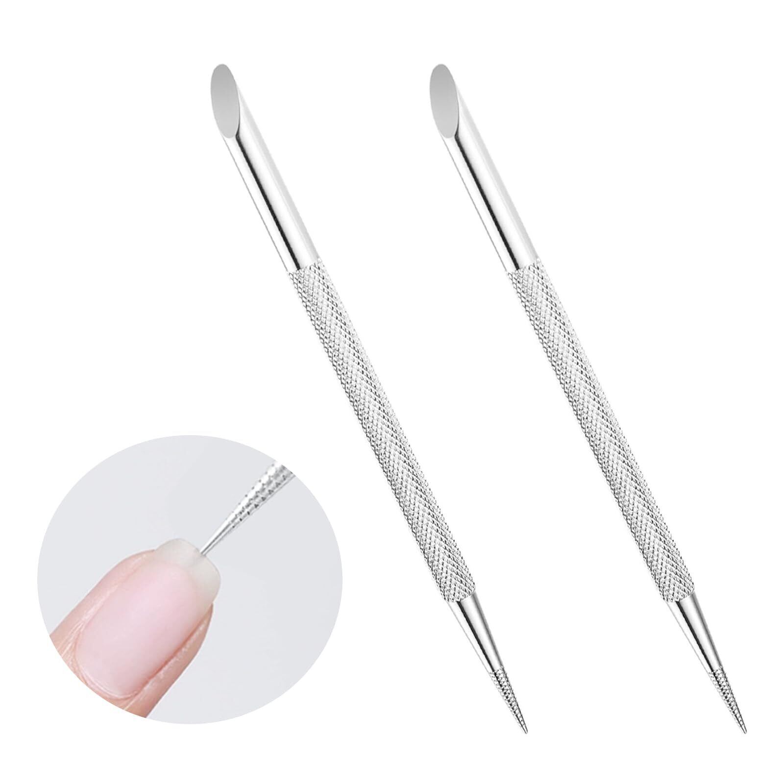 キューティクルプッシャー【2個入り】ステンレススチールキューティクルプッシャー キューティクルメタルプッシャー ネイルドットペン ダブルエンドキューティクルプッシャー シルバー ネイルケアツール 甘皮の除去に 両面甘皮処理 ダブルエンドマニキュア マニキュアツール
