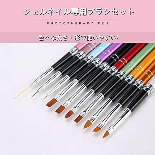 ジェルネイルブラシ 10本セット 3D ネイルブラシセット 10種10カラー ジェル アート 筆 キャップ付き スカルプ UV用 ネイルツール ネイル用品