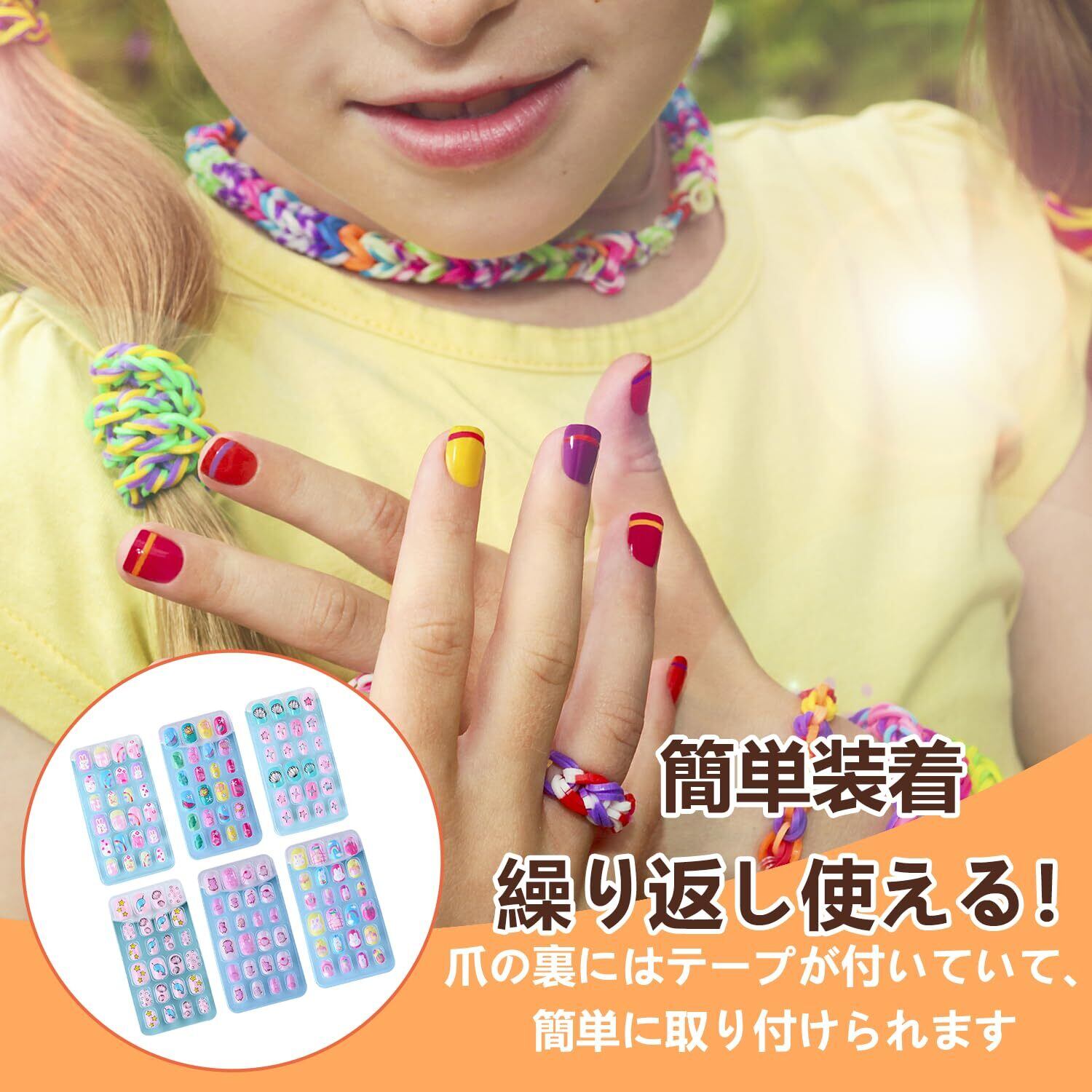 【新春セール】【カラフル多巴胺デザイン】子供用ネイルチップ 粘着テープ付き【6種類で144個 セット】子供用付け爪 可愛い 爪を傷めず無害素材の使用 子供用小さい爪用 自宅のDIYネイル 簡単装着 繰り返し使える 誕生日 こどもの日 プチプレゼント | Lumisfera