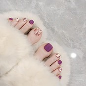 [ALLEVG]フットネイルチップ 24枚入 足用ネイルチップ ショート 紫 つけ爪 マグネットネイル 夏 フットネイル 可愛い 成人式 人気