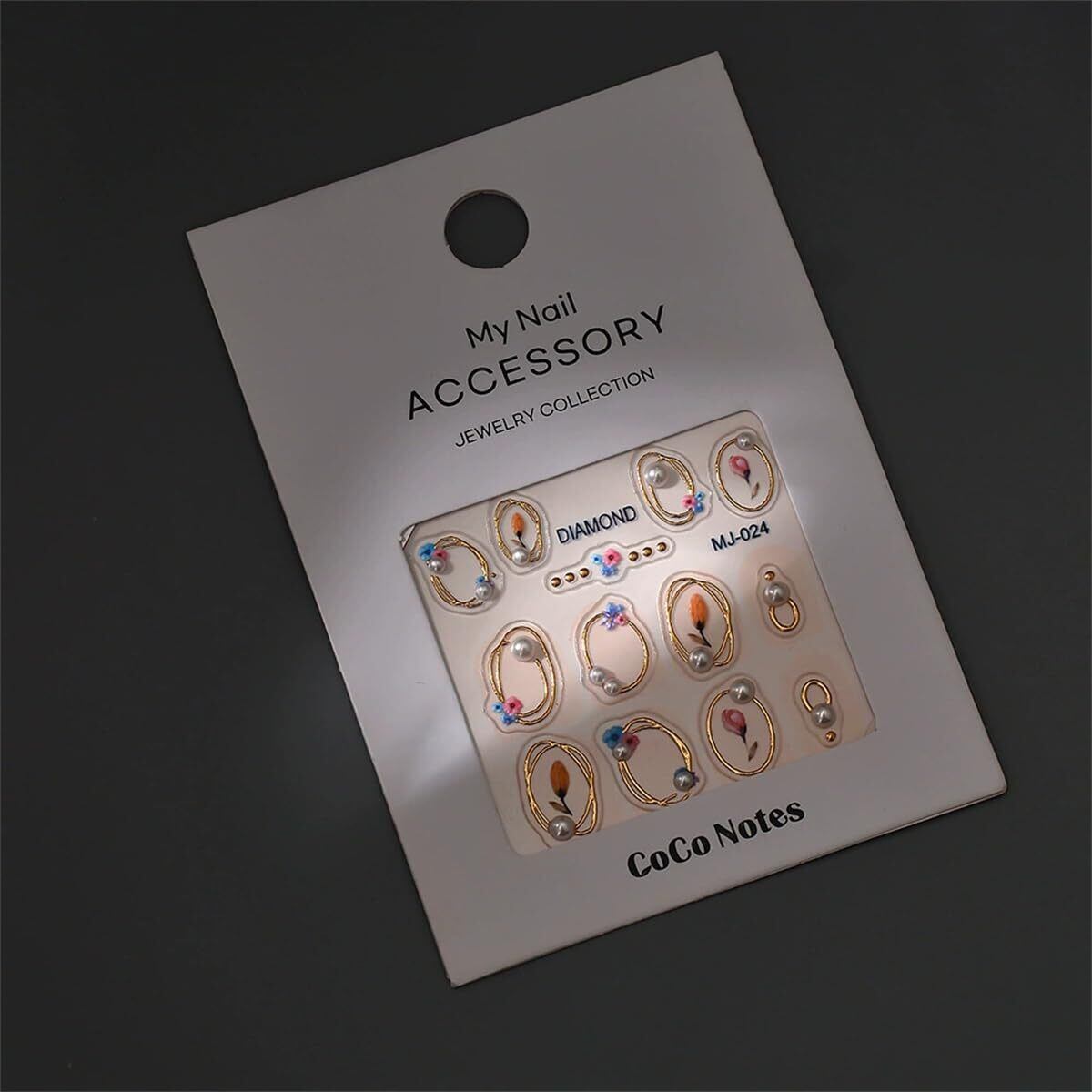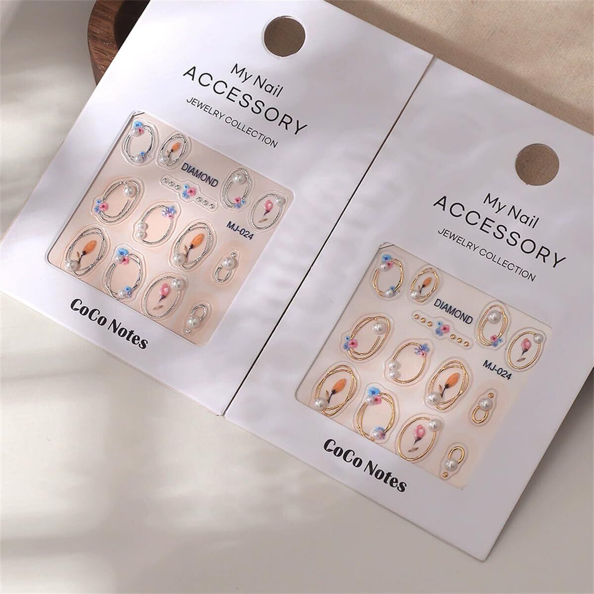 【在庫処分】DUOLEIMI ネイルシール フレーム ネイルステッカー パール ネイルデコシール 3D 貼るだけ 枠 金 銀 額縁 ジェルネイルシール ジュエリーストーンシール 立体感 2枚セット (MJ-024) | Lumisfera