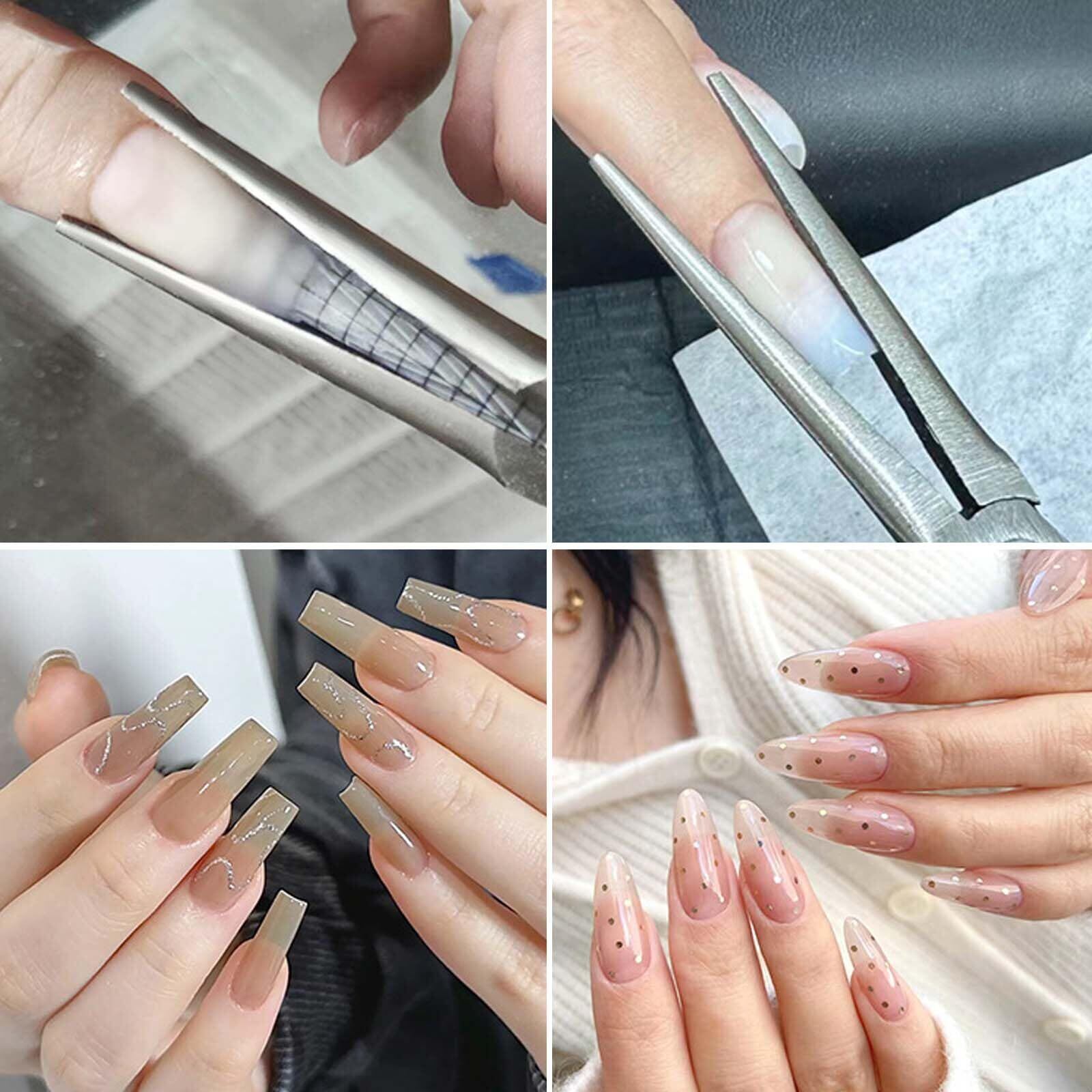 【使用方法】ネイルピースに固定接着剤を塗布し、ネイルピースを指の爪の位置に貼り付け、貼り付け後10秒間ライトを照らし。ネイルプライヤーで爪の両端を優しく挟み、同時に30秒間ライトを照らしで固定することで、このようにして、爪は自然で細くて美しく見えます。