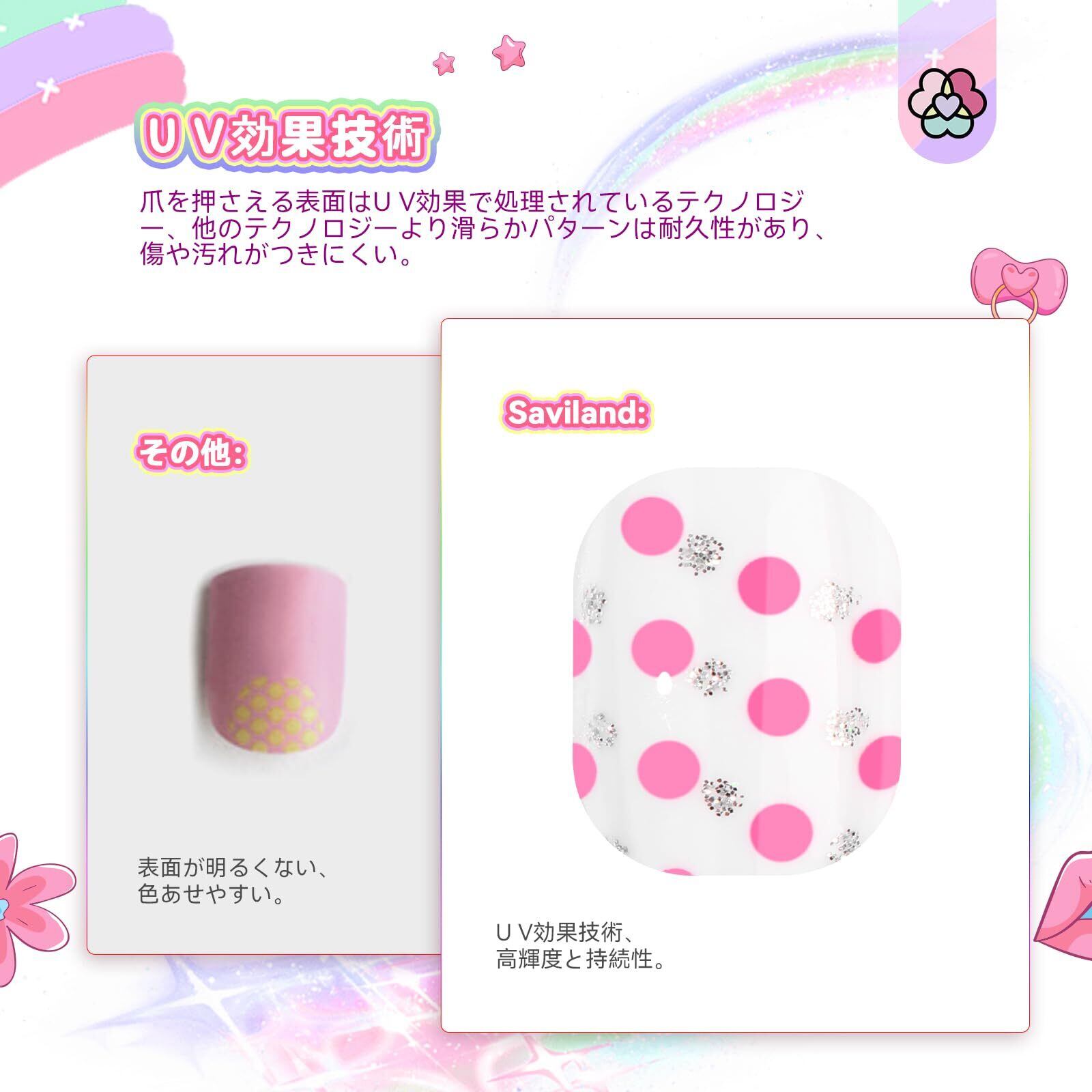暖かいヒントと最高のサービス ✨使用する前に、自分の爪に適したサイズの付け爪を選択してください。ファンデーションジェルをファイルして適用する必要はありません。各爪の表面をきれいにして、余分な油や汚れを取り除きます。涼しい場所に保管してください。子供の手の届かないところに保管してください。 Saviland 子供 ネイルチップ セットについていつでも対応いたします。ハッピーショッピング〜