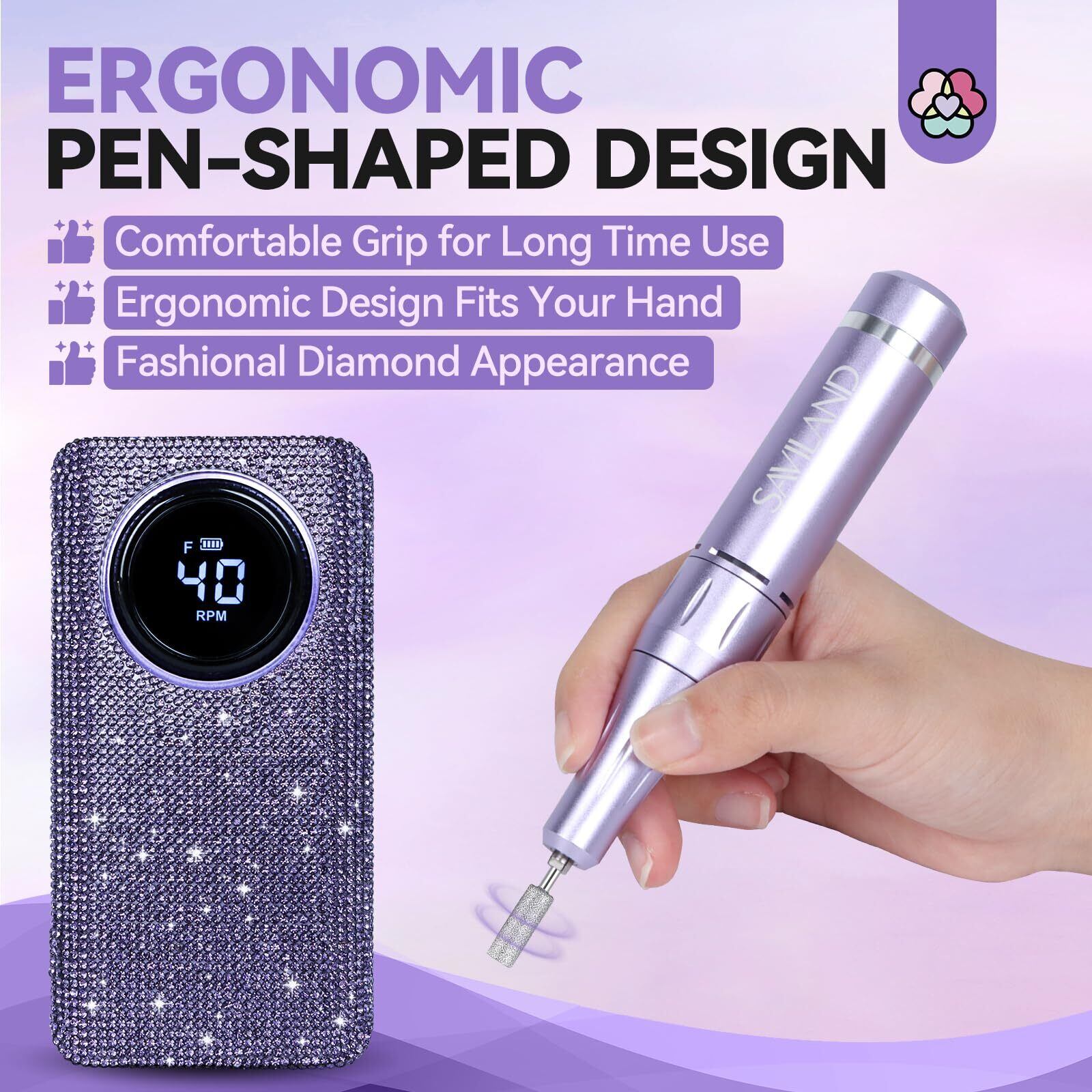 SAVILAND 40000RPM ネイルドリル 大容量 充電式 電動爪やすり 爪用ドリルビット13本 マニキュア ペディキュア 05