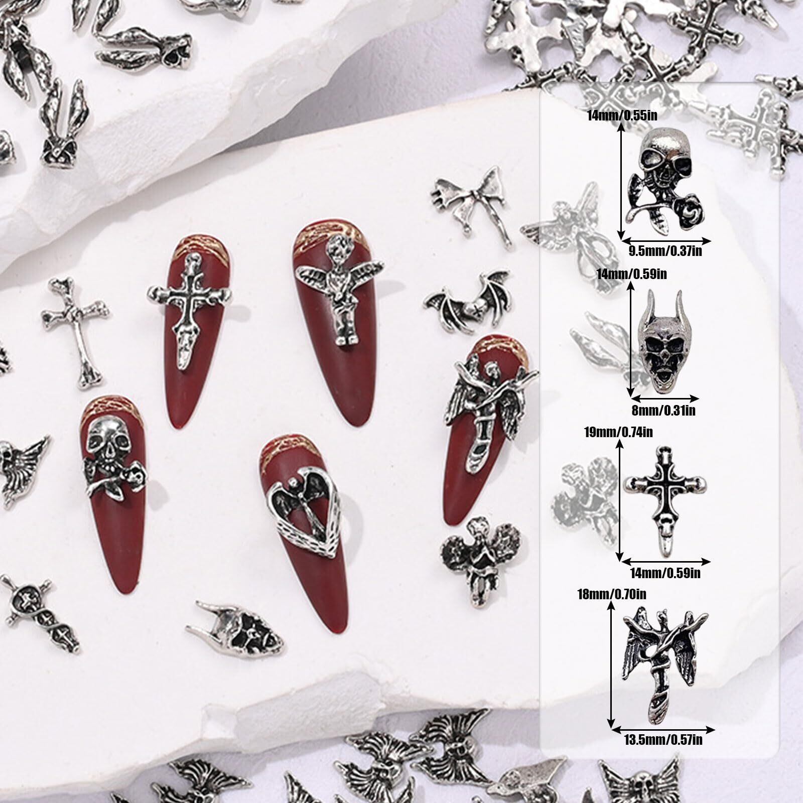 【ネイルパーツ】パンクやゴシック風ネイルパーツが登場!コウモリ、スカル、クロス、天使、悪魔が含まれており、高級感があって、美しい輝きを放ち、 上品さと華やかなネイルを演出します!