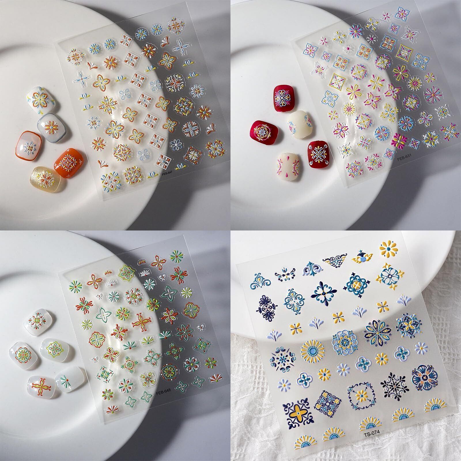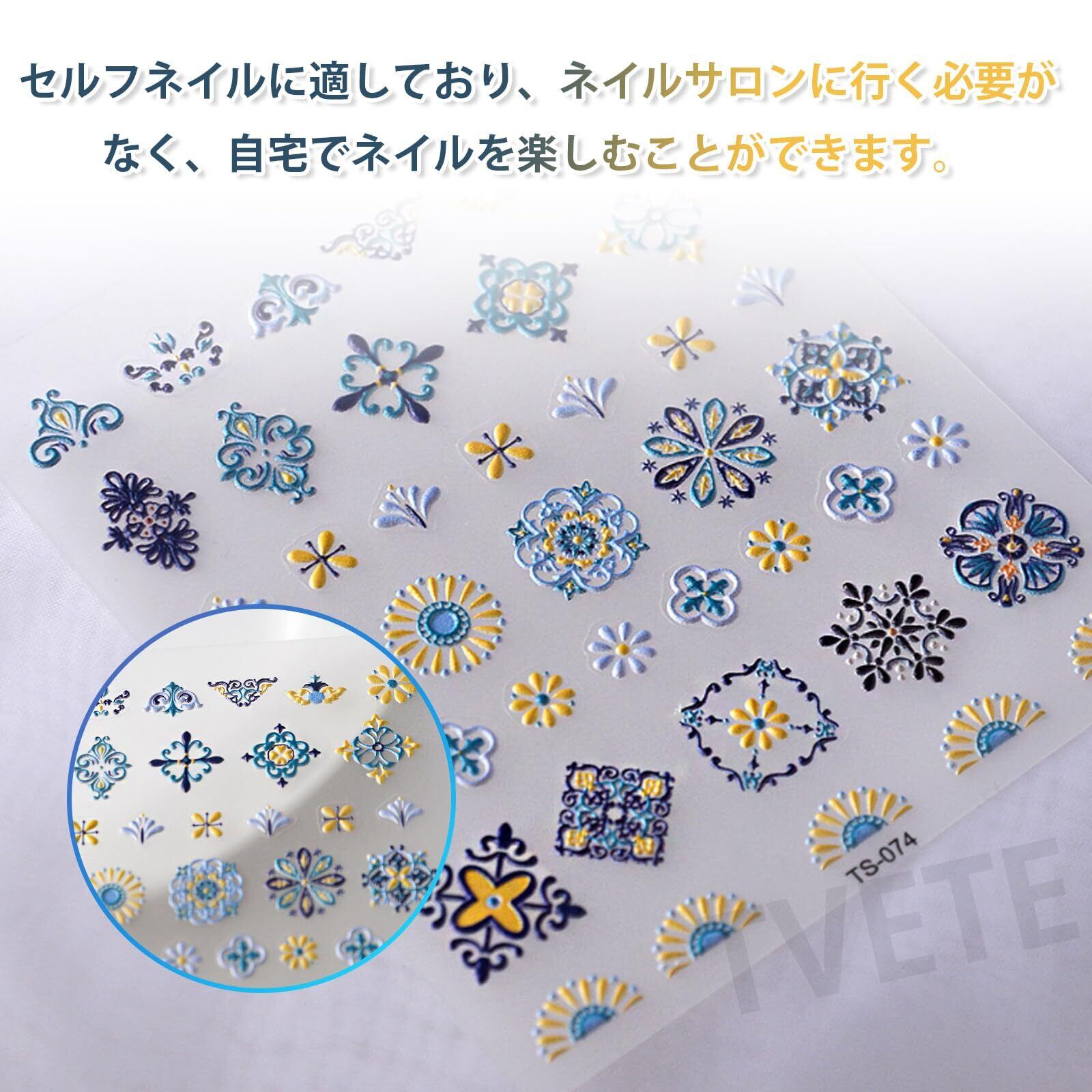 TVETEネイルパーツシール ボヘミアン 5D立体 エンボス ネイルシール 自粘着 ネイルステッカー 防水 立体感 可愛い ボヘミアン