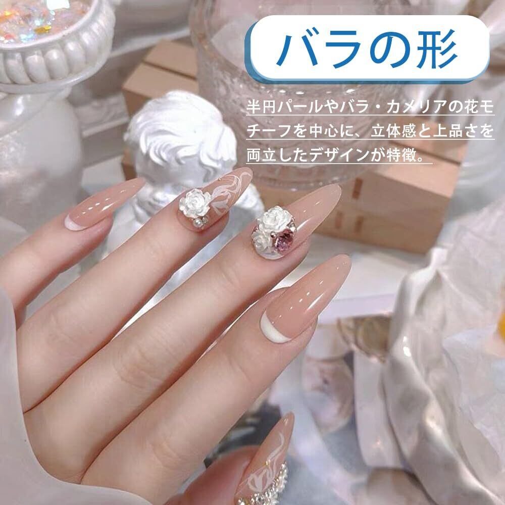 1. 【3D立体デザインで豪華な仕上がり】バラの可憐な花びらとカメリアの優雅な雰囲気を再現した立体パーツ、ネイルアートに華やかさと立体感をプラス!