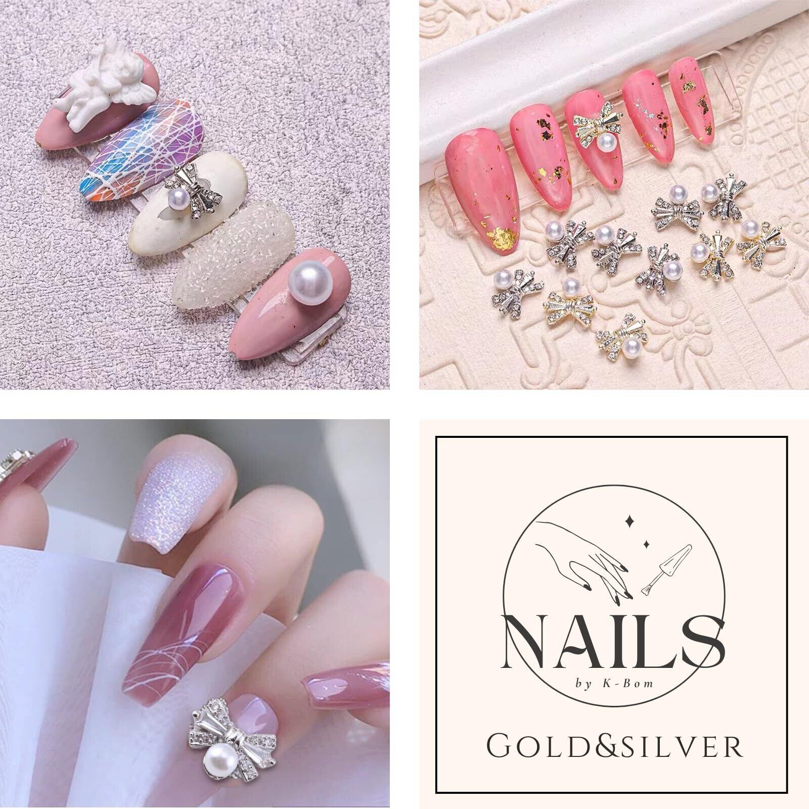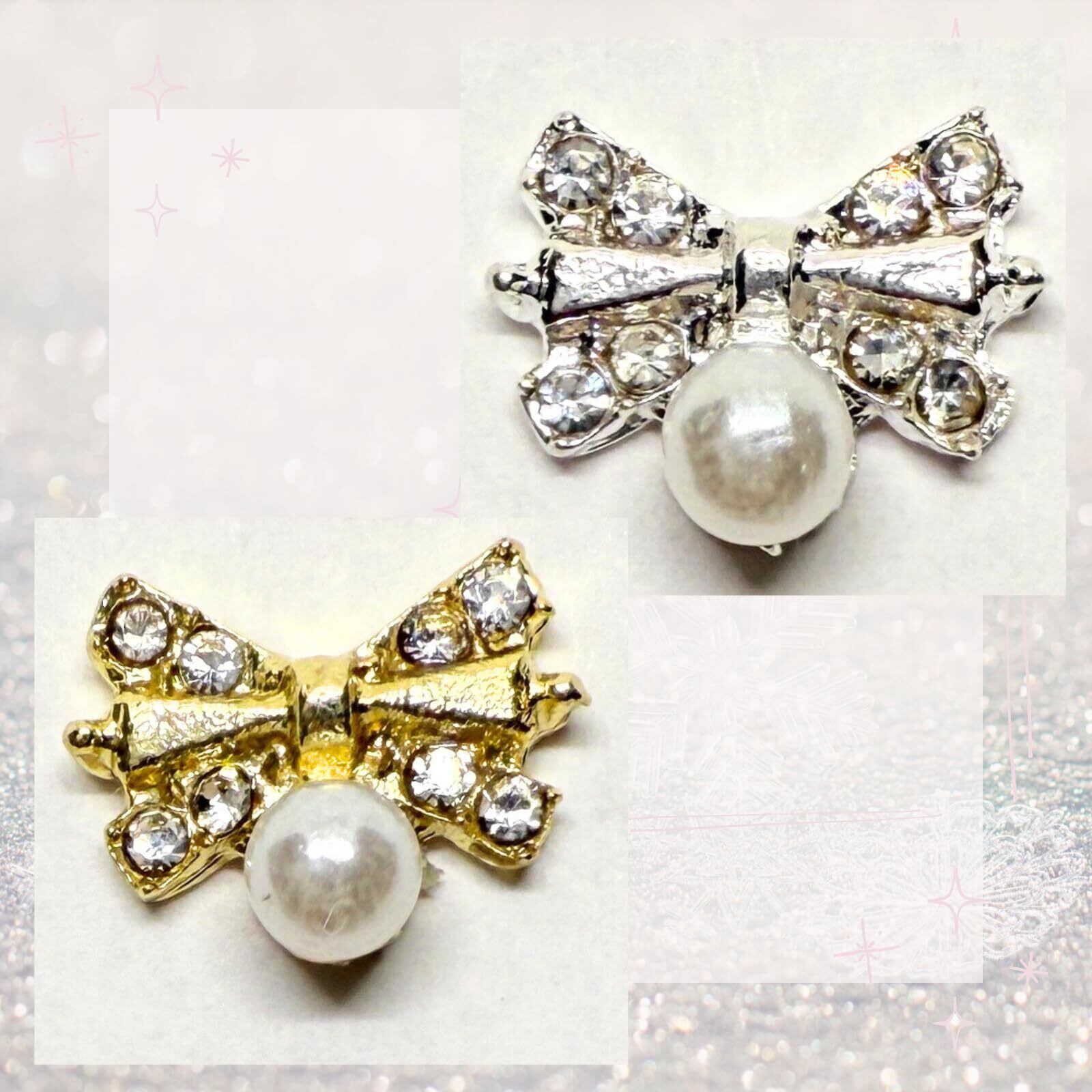 【特価商品】K-Bom ネイルパーツ リボン バレンタイン ビジュー パール 3D 立体 ゴールド&シルバー 10個セット パーティー ネイルアート レジンパーツ レジン ネイルデコパーツ ジェルネイル ネイルデザイン (ゴールド&シルバー10) | Lumisfera