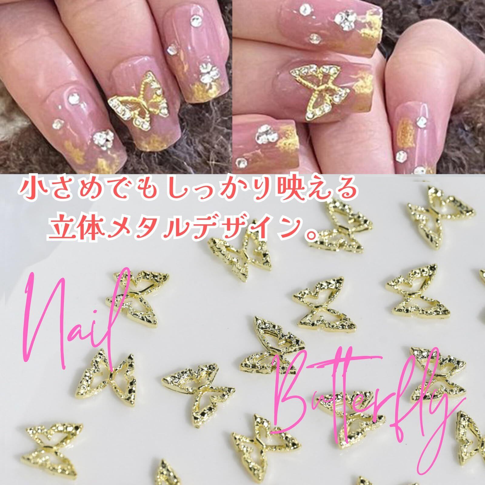 【3D立体デザイン】上品な輝きのメタル製バタフライパーツで、華やかな指先に