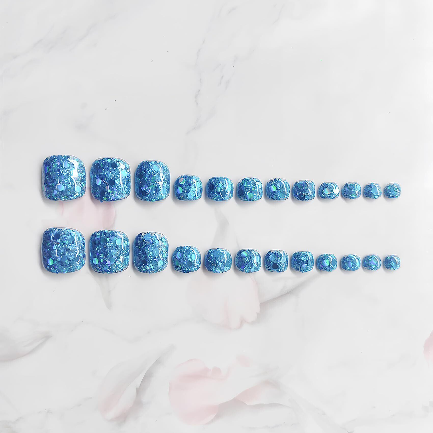 [NEURAD]ネイルチップ 足用 海の青 24枚入 グリッター フットネイル 足用ネイル 夏 付け爪 人気 シンプル 繰り返し使える
